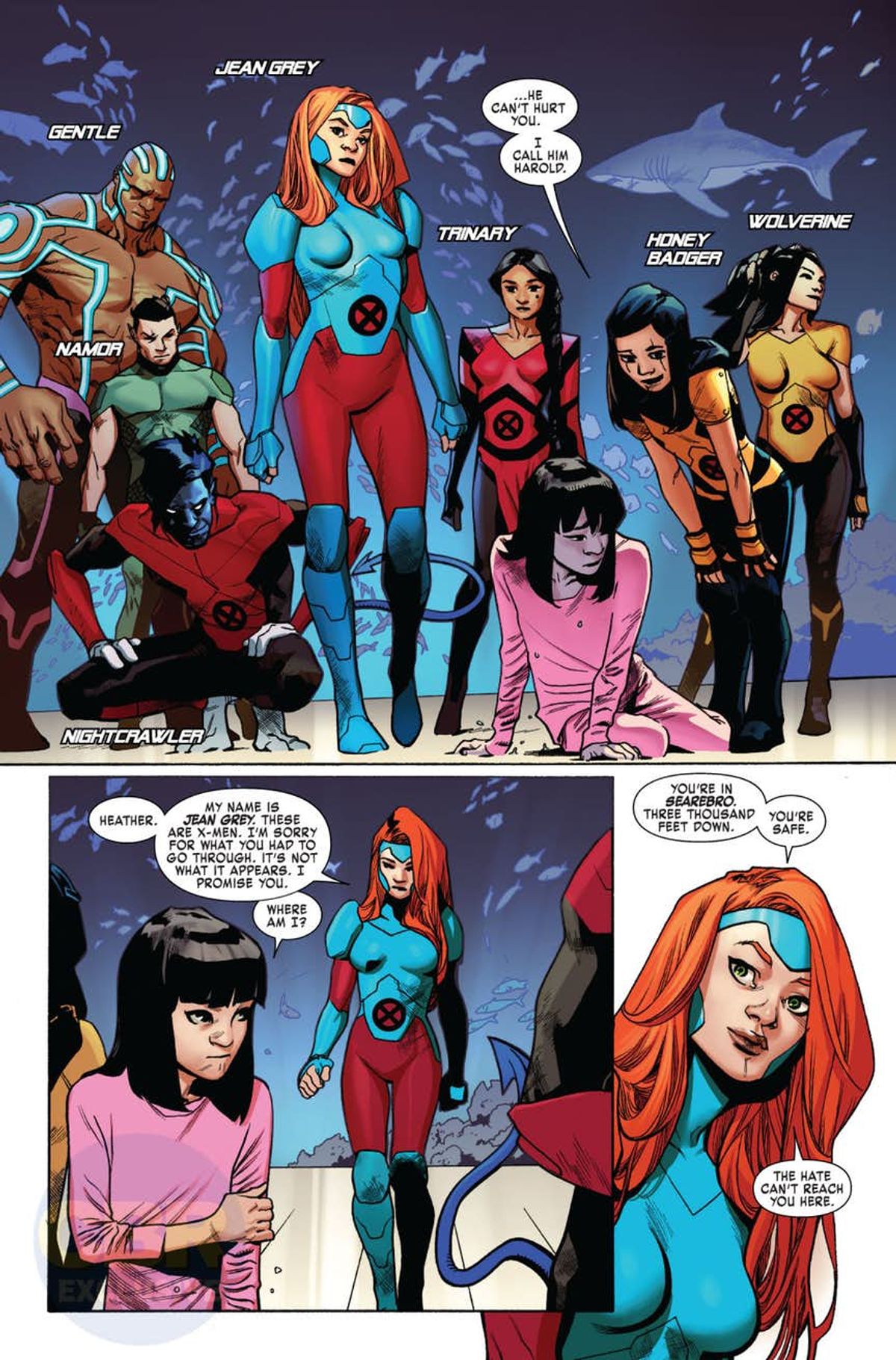 Di seguito trovate la sinossi e le prime tavole di X-Men: Red #1.Jean Grey è tornata! Approdata in un mondo che non riconosce, la First Lady degli X-Men ha riunito una squadra improbabile composta da: Nightcrawler, Namor e Laura Kinney (la Nuovissima Wolverine) per fronteggiare un male che minaccia di abbattere il sogno di Xavier con ogni mezzo necessario!