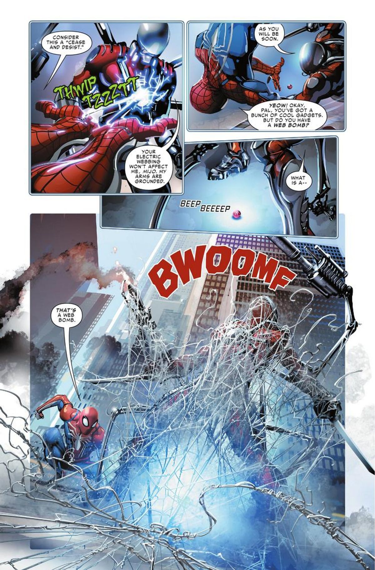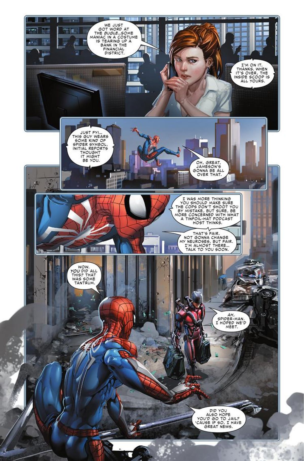 Ho avuto la fortuna di avere la collaborazione di Dan Slott che mi ha passato alcune idee molto carine, e da lì, per dar vita a questo evento ragnesco, non ho dovuto far altro che fidarmi dell'ufficio di editor di Spidey, per mettere assieme le cose. Volevamo che la storia fosse un percorso importante per molti personaggi e avesse la stessa atmosfera avventurosa nel Multiverso di Ragnoverso, con tutte quelle folli varianti di Spider-Man. Speriamo di aver fatto tutto per bene.Non è la prima volta che lavoro su cose tipo adattamenti, sequel o prequel di videogiochi sulle pagine dei fumetti. Ho anche realizzato storie che funzionavano come seguiti di serie TV. Ma nulla è paragonabile a questa esperienza, che mi ha permesso di lavorare con un personaggio su un medium, il videogioco, e poi di continuare la sua storia su un altro, sapendo che la seconda parte avrebbe avuto effetto sulla prima. Grandioso... e qualcosa che vorrei vedere capitare più spesso.