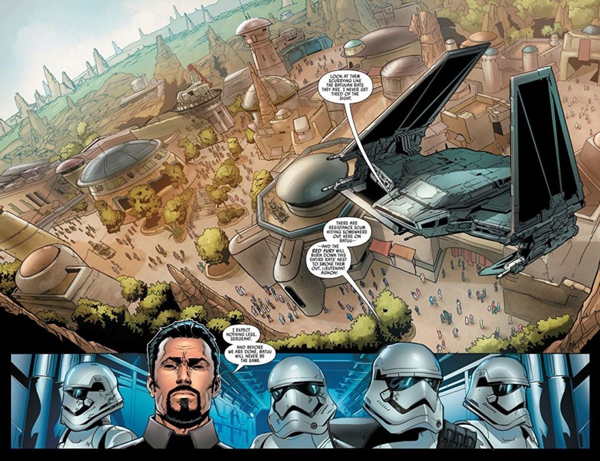 Il Primo Ordine non ha ancora conquistato totalmente questa porzione dell'Orlo Esterno, ma sono sicuramente una presenza dominante nell'avamposto. Stanno seguendo delle indagini, con dei rapporti che segnalano la Resistenza nascosta sul pianeta, e finché le truppe imperiali saranno stazionate lì, esse costituiranno una potenziale minaccia per contrabbandieri, cacciatori di taglie, criminali e le diverse canaglie che si trovano in zona.