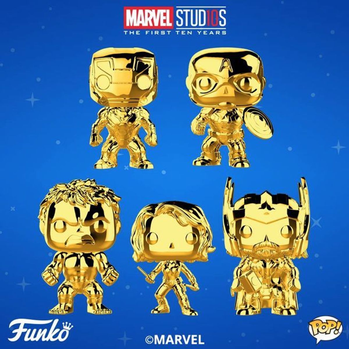 Anche la Funko celebra il 10° anniversario dei Marvel Studios. Come? Realizzando delle speciali figure della linea POP! dorate e cromate dedicate ai protagonisti più amati dell'Universo Cinematografico Marvel come Iron Man, Captain America, Loki, Vedova Nera e molti altri.