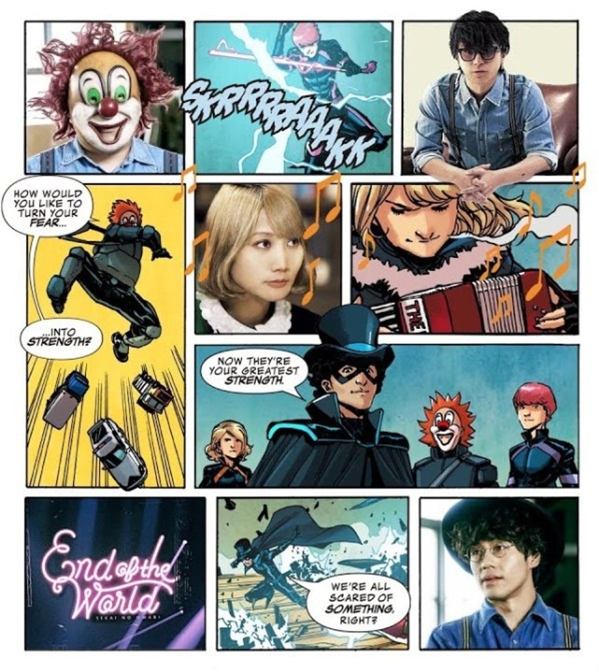Tocca un'immagine per scorrere la galleriaAfter two years in development, it was a thrill to finally announce the special comic book/music video/documentary series @Marvel created with groundbreaking Japanese rock band End of the World (@SekaiNoOwariOFC) at Tokyo Comic Con! https://t.co/dvz8a9r1Wp #EOTW pic.twitter.com/qNyjUD4Hgh