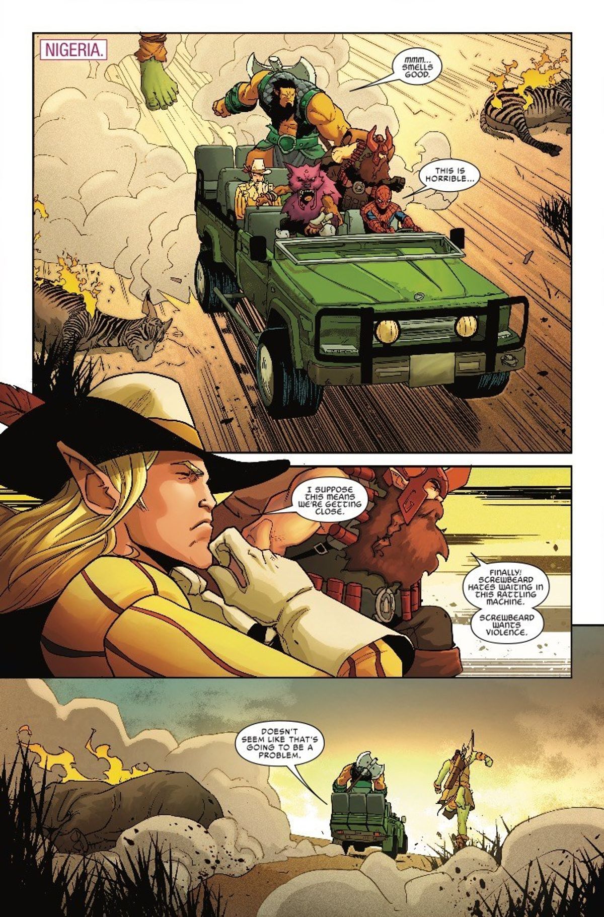 • Spider-Man dovrà assumere il ruolo di Frodo e guidare questo gruppo sgangherato composto da Screwbeard il Nano, Ud il Troll, il mago Ro BloodRoot, l’elfo della luce Sir Ivory Honeyshot e il Gigante della Montagna! Ma chi rappresenterà Asgard?!