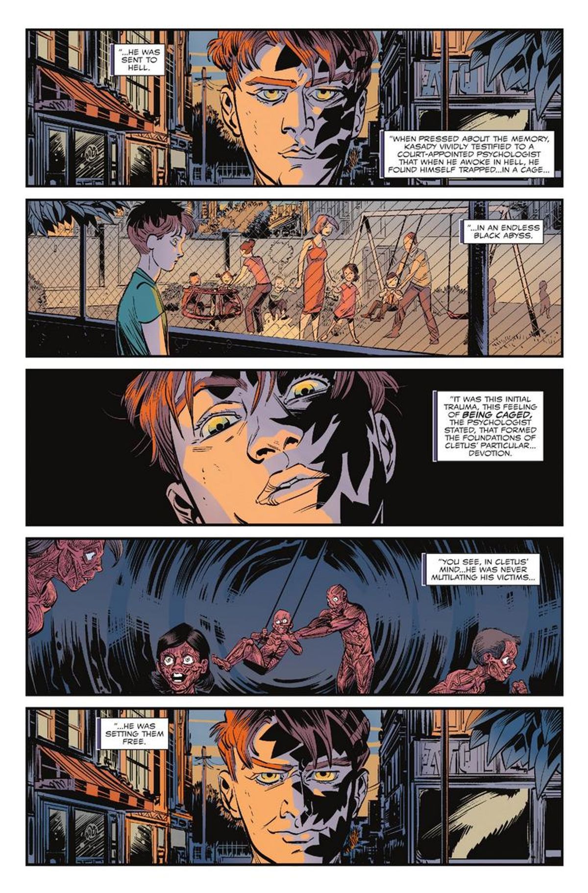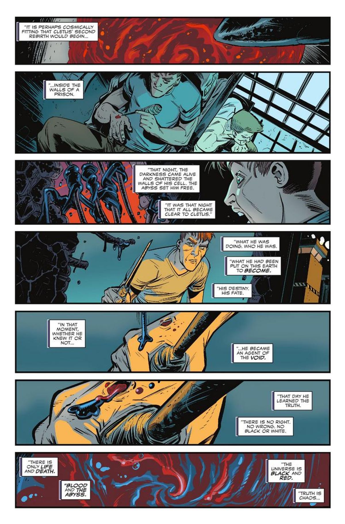 La storia seguirà la nascita di un culto devoto al folle serial killer Cletus Kasady, e lo sceneggiatore ha affermato che rappresenta un capitolo molto importante del suo ciclo narrativo, nonché un momento seminale nella grande saga dei due simbionti.Di seguito trovate la sinossi e alcune tavole di Web of Venom: Carnage Born #1.