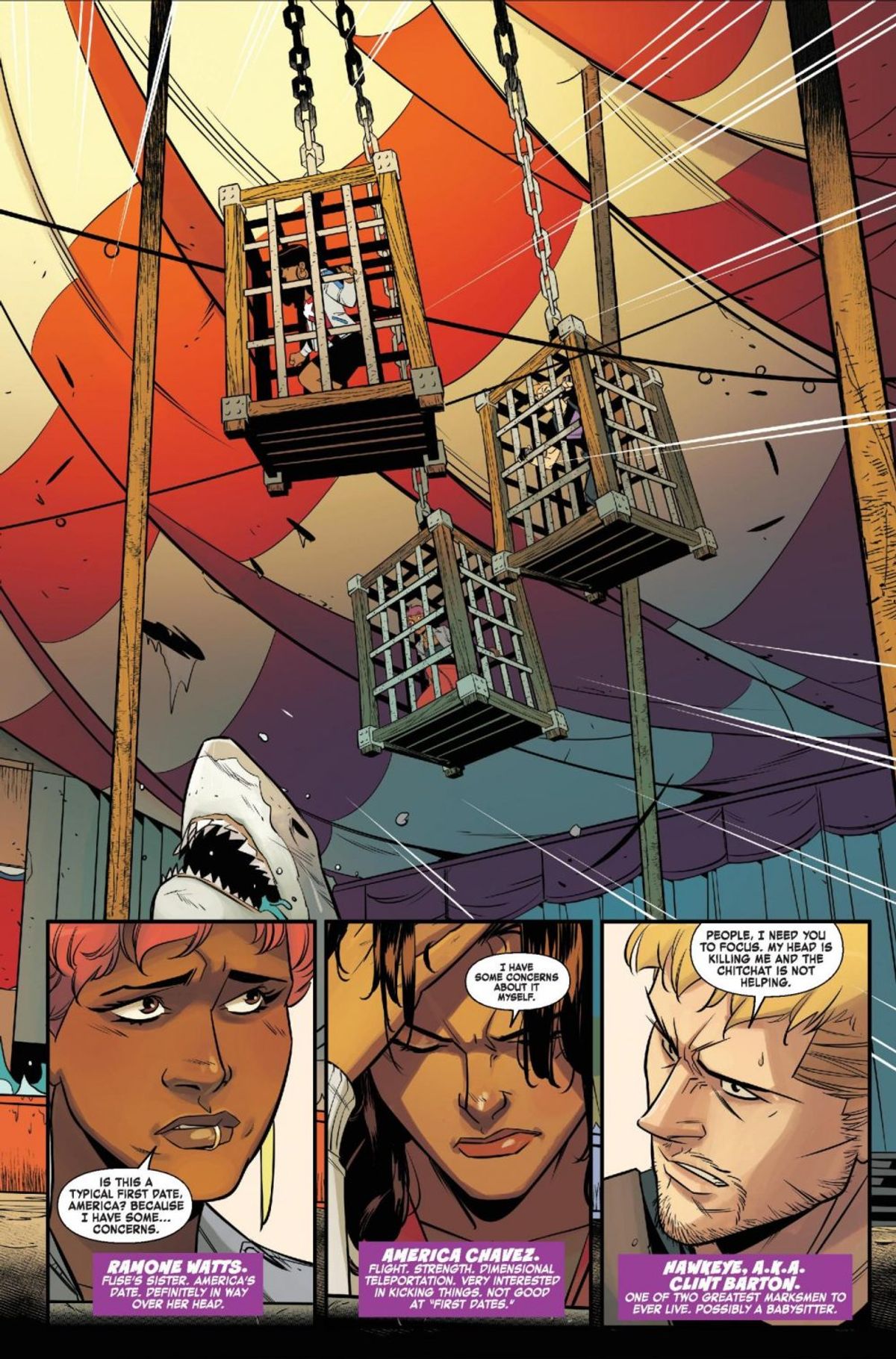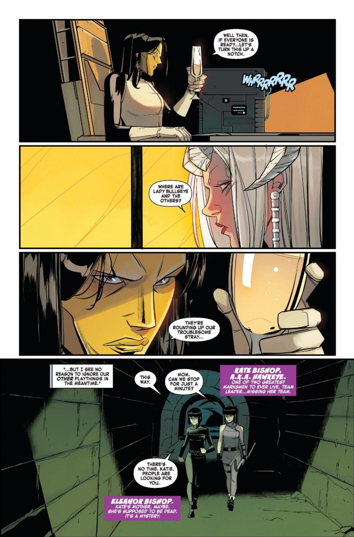 In questa storia, i nuovi Vendicatori della Costa Ovest sono intrappolati in un vecchio luna park e con i poteri apparentemente smorzati, lontani dalla loro leader Occhio di Falco. In più, resta il mistero legato a Eleanor Bishop, madre di Kate: è viva o uno dei suoi nemici ne sta imitando le fattezze?