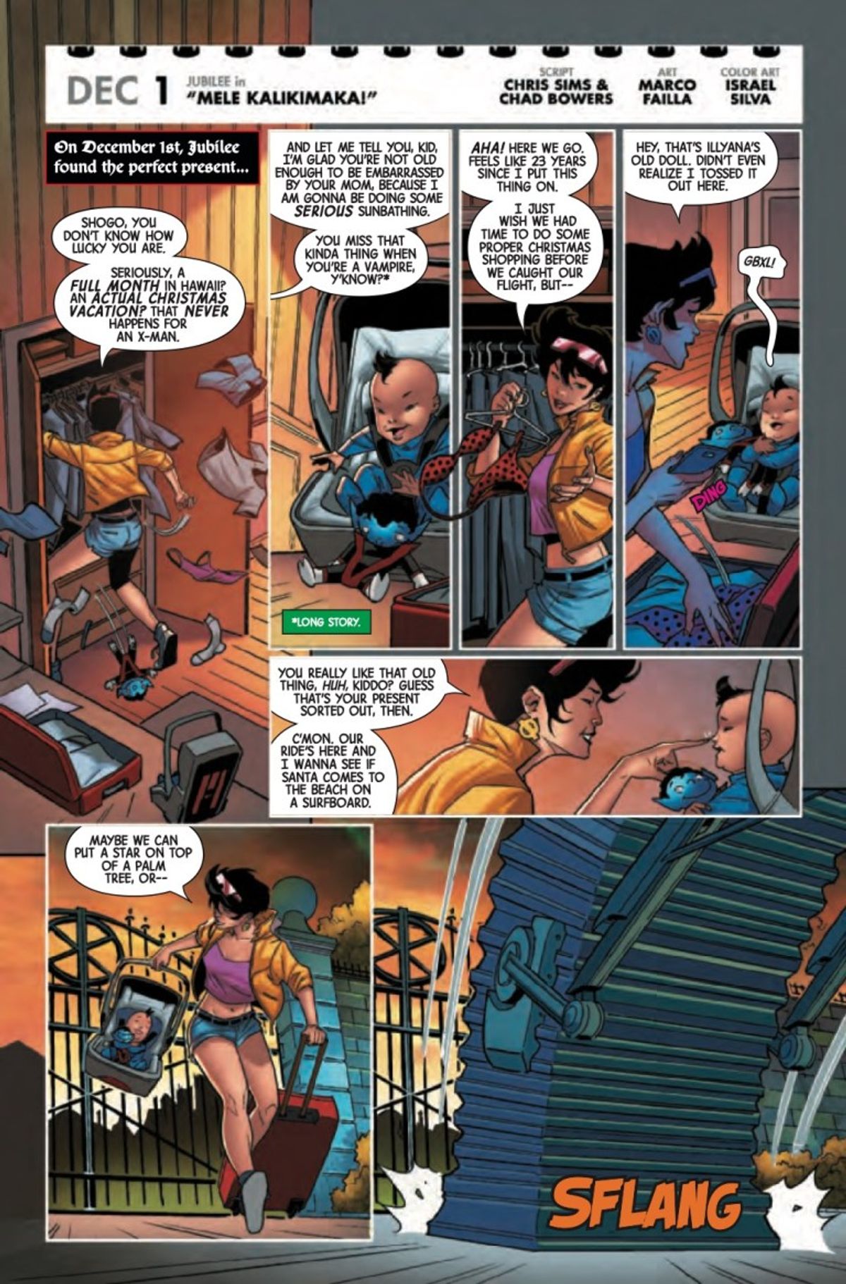 Di seguito trovate la sinossi e l'anteprima dell'albo diffusa dalla Casa delle Idee, contenente le prime cinque storie, tra cui quella dedicata al 2 dicembre scritta da Chris Claremont per i disegni di Terry Dodson.