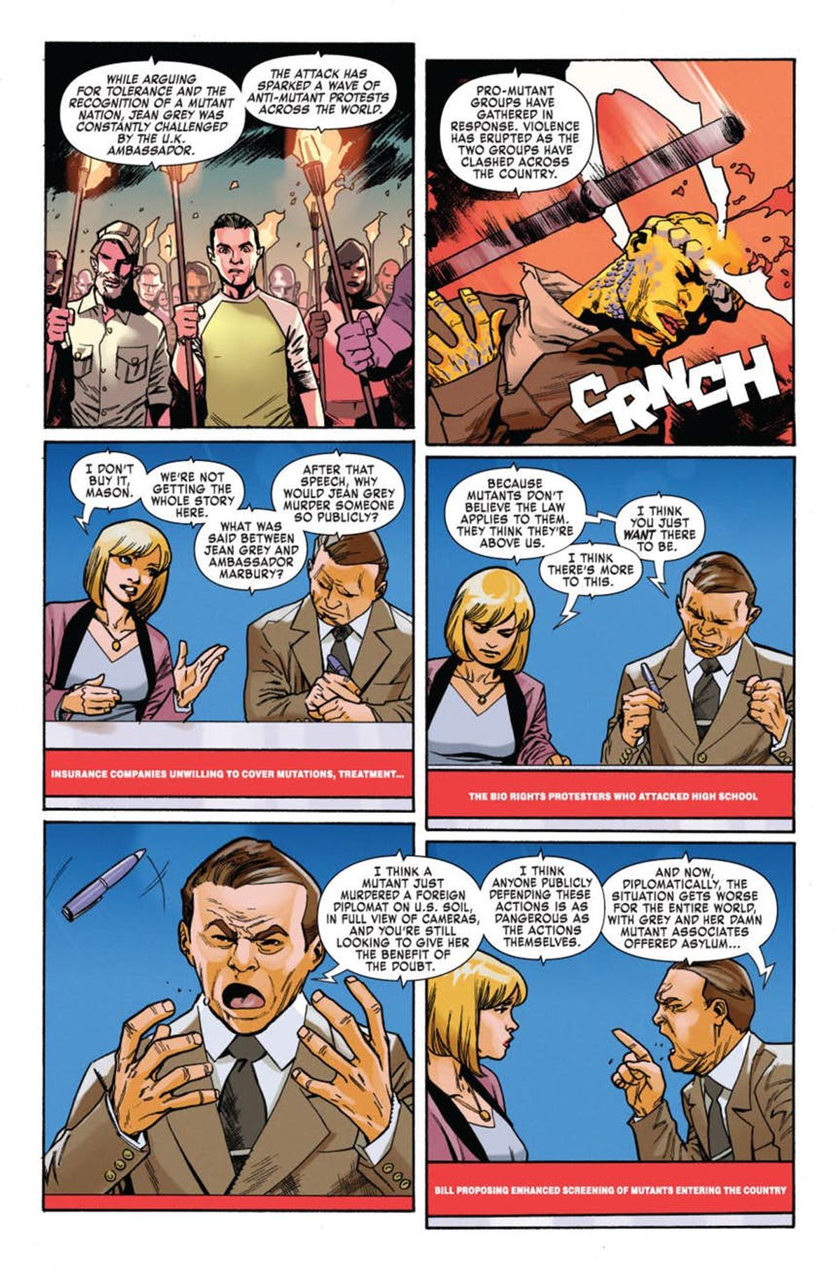 Questa storia parla essenzialmente di lei tornata in vita, ma non allo stato che ha abbandonato morendo. Non vuole tornare a essere quella che era. Ha visto che il mondo è cambiato e non tutto quel che vede le piace. Ha grande empatia per quel che le capita attorno, così tanta da desiderare di cambiare le cose profondamente, non solo per l'umanità o per la razza mutante, ma per tutti. Ed è quel che vedremo: la sua missione è migliorare il mondo. Non una dichiarazione da poco. Quindi non sarà solo una storia di eroi contro il cattivo della settimana, ma una vicenda di ideali, di cui Jean è l'incarnazione.La vedremo andare alle Nazioni Unite, rappresentare il bene comune e spiegare le sue idee per una nuova nazione mutante che possa convivere in pace con tutti gli altri, per aiutare il mondo a progredire. Spiegherà che ogni volta che i mutanti hanno fatto fronte comune in luoghi isolati, come a Genosha e Utopia, le cose non sono finite proprio bene. Quindi l'idea è di essere uniti pur rimanendo esattamente dove ci si trova. Inoltre, la vedremo riunire le migliori menti del pianeta: vincitori di Nobel, educatori, leader, scrittori. Li metterà tutti assieme in una stanza per forgiare un nuovo cammino assieme a loro.