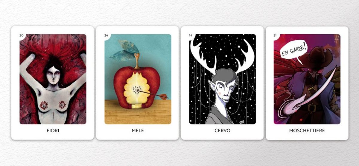 Il progetto diventerà realtà tramite una campagna di crowdfunding sulla piattaforma Produzioni dal Basso (dove potete trovare tutte le informazioni al riguardo) e prevede le canoniche quaranta carte (più una extra) dei due mazzi, ognuna illustrata da un artista diverso. Il formato delle carte è 6,3 x 8,7 cm, realizzato su cartoncino triplex extra (il migliore tra i tipi fabbricati offerti dal mercato per la produzione delle carte da gioco).