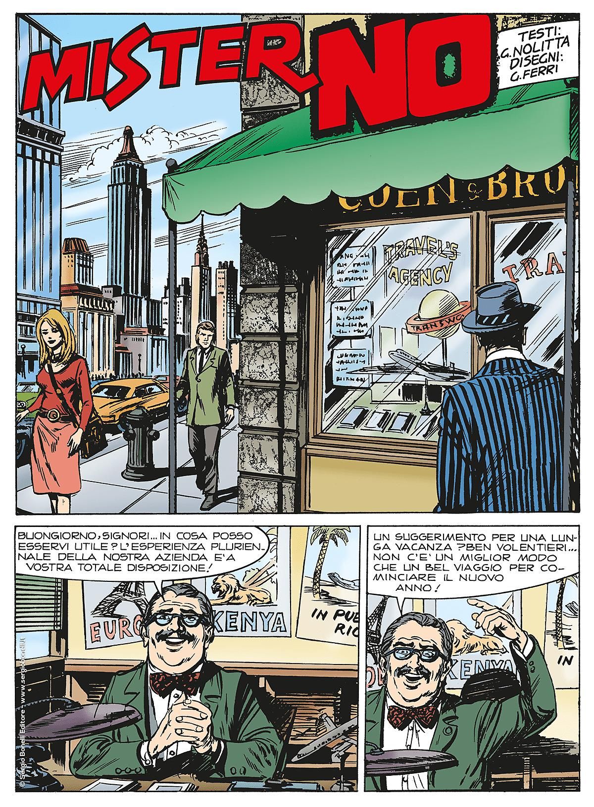 L'iniziativa editoriale viene lanciata in occasione dei 45 anni del personaggio, creato a metà degli anni '70 da Guido Nolitta; per ora sono previsti 60 volumi, di dimensioni uguali all'attuale riproposta di Storia del West, che riproporranno le copertine originali realizzate da Gallieno Ferri. Ogni uscita conterrà un episodio completo, introdotto da un articolo firmato da Fabio Licari.Il protagonista della serie è Jerry Drake, eroe anticonformista, sbruffone, altruista, coraggioso e particolarmente sensibile al fascino femminile, che vive avventure tra i pericoli dell'immensa e inesplorata foresta amazzonica. Nel 2018 Sergio Bonelli Editore ha presentato la miniserie in sei parti Mister No Revolution, che rivisita l'antieroe in chiave moderna, immergendolo nello scenario della guerra del Vietnam. La scorsa primavera invece si è conclusa la maxiserie Mister No - Le nuove avventure, che ha proseguito in edicola le vicende del personaggio originale.Galleria