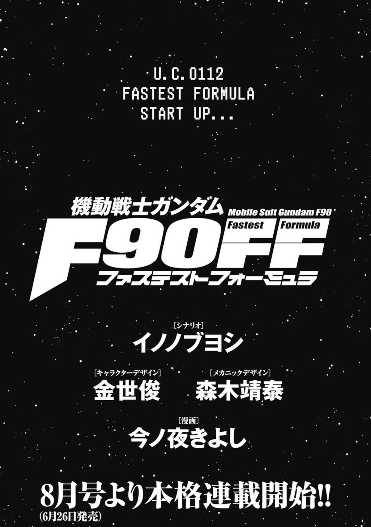 Il prossimo 26 giugno esordirà sulle pagine della rivista nipponica Monthly Gundam Ace, pubblicata da Kadokawa il fumetto Mobile Suit Gundam F90 FF (le due lettere finali stanno per "Fastest Formula"), scritto da Nobuyoshi Ino, con il character design di Sejoon Kim (Mobile Suit Gundam Narrative, Mobile Suit Gundam Twilight AXIS), il mecha design di Yasuhiro Moriki (Golgo 13, Gravion) e i disegni di Kiyoshi Imanoya.