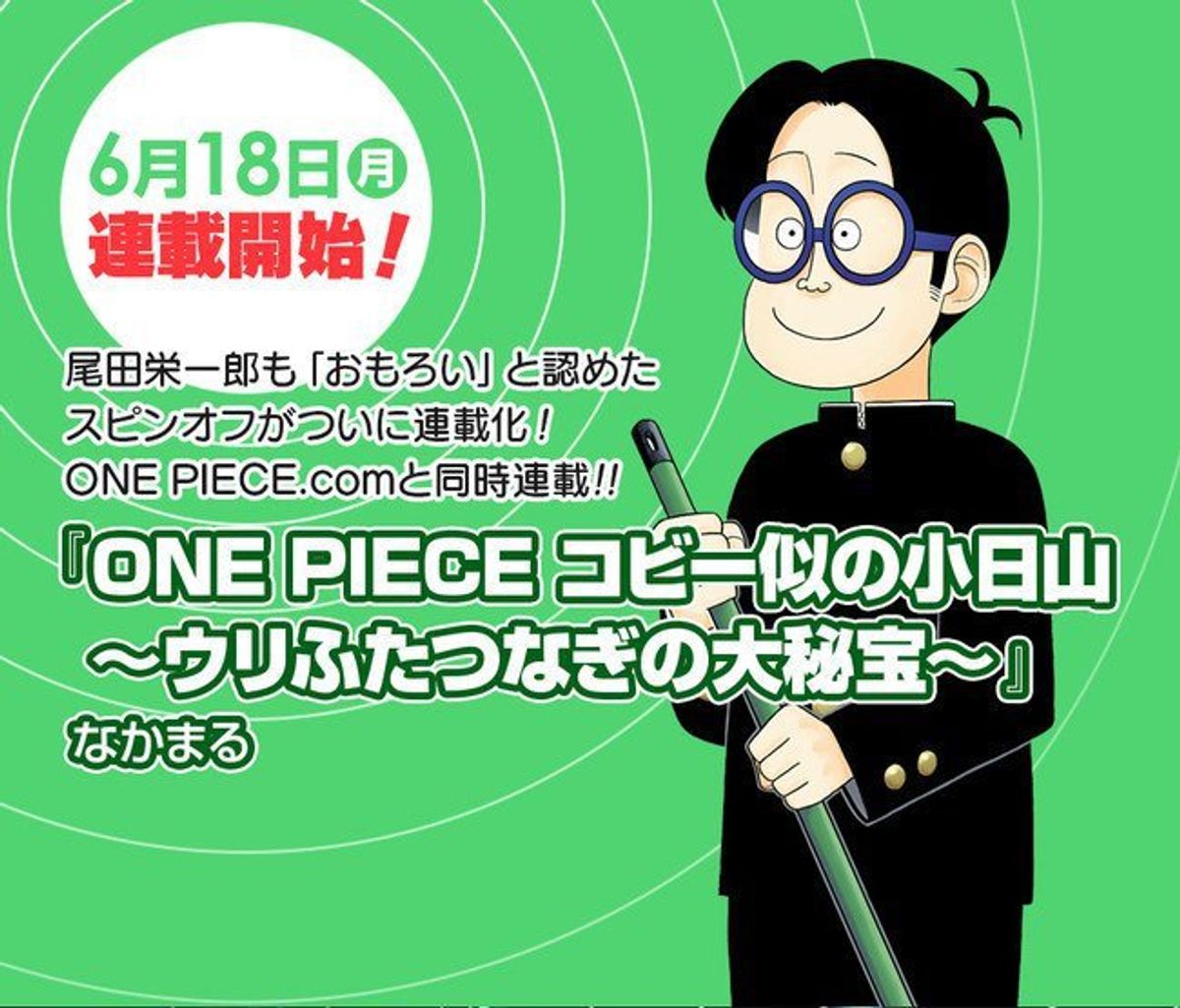 La storia inizia in un paesino dove un gruppo di bambini guidati dal loro leader Kusopp sognano di diventare come la ciurma di Cappello di Paglia; un giorno incontrano un ragazzo di nome Chimpy, rassomigliate a Rufy e in grado di allungare il proprio pene come se fosse di gomma.A partire dal 18 giugno sul sito ufficiale e sull'app di Shonen Jump+ arriverà One Piece Koby ni no Kobiyama: Urifutatsu Nagi no Ohiho ("Kobiyama, lui e Koby di One Piece si assomigliano come due gocce d'acqua"), evoluzione seriale di un fumetto autoconclusivo che il suo autore Nakamaru aveva pubblicato lo scorso dicembre su Weekly Shonen Jump. Il protagonista è un liceale che vive nel mondo reale e il cui aspetto è identico a quello di Koby, personaggio apparso fin dal secondo capitolo del manga One Piece.