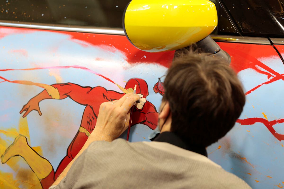 Panini ha svelato la MINI Full Electric a tema Flash personalizzata dall'artista Carmine Di Giandomenico nella cornice di Lucca Changes