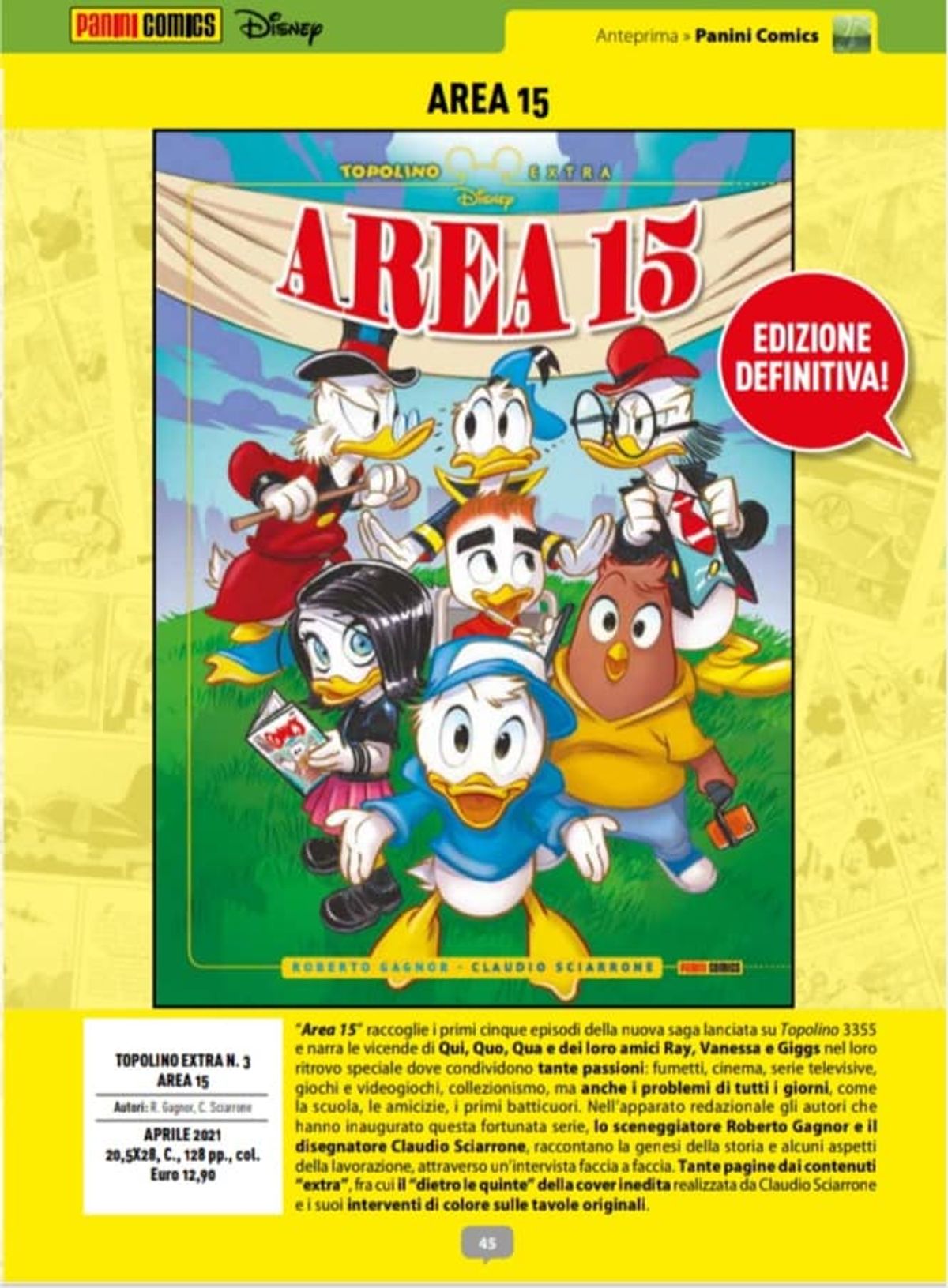 Panini ha presentato le novità Disney in arrivo nel mese di aprile, tra cui spicca il volume di Topolino Extra dedicato ad Area 15