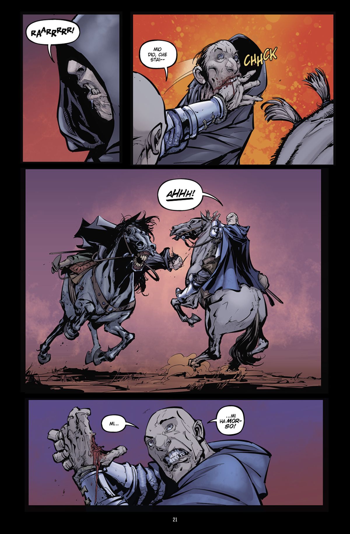 Il maestro dell’horror-gore Frank Tieri e il disegnatore ucraino Oleg Okunev ci accompagnano in un viaggio nell’incubo ambientato nell’Europa del XIV secolo. Una terribile pestilenza, conosciuta col nome di ‘morte nera’, sta devastando il continente europeo e ha già ucciso oltre 100 milioni di persone. Questa è la versione ufficiale, tramandata anche dai libri di storia. Ma se fosse tutto falso? Se in realtà quella pestilenza fosse stata la prima infestazione zombie non registrata della storia dell’uomo? PESTILENCE – una storia horror-zombie in due parti – segue le vicende dell’ex-crociato Roderick Helms e degli altri membri del Fiat Lux, un commando sotto gli ordini diretti della Chiesa. Il loro obiettivo? Trovare la causa della devastante epidemia prima che l’intera umanità soccomba ai non-morti.