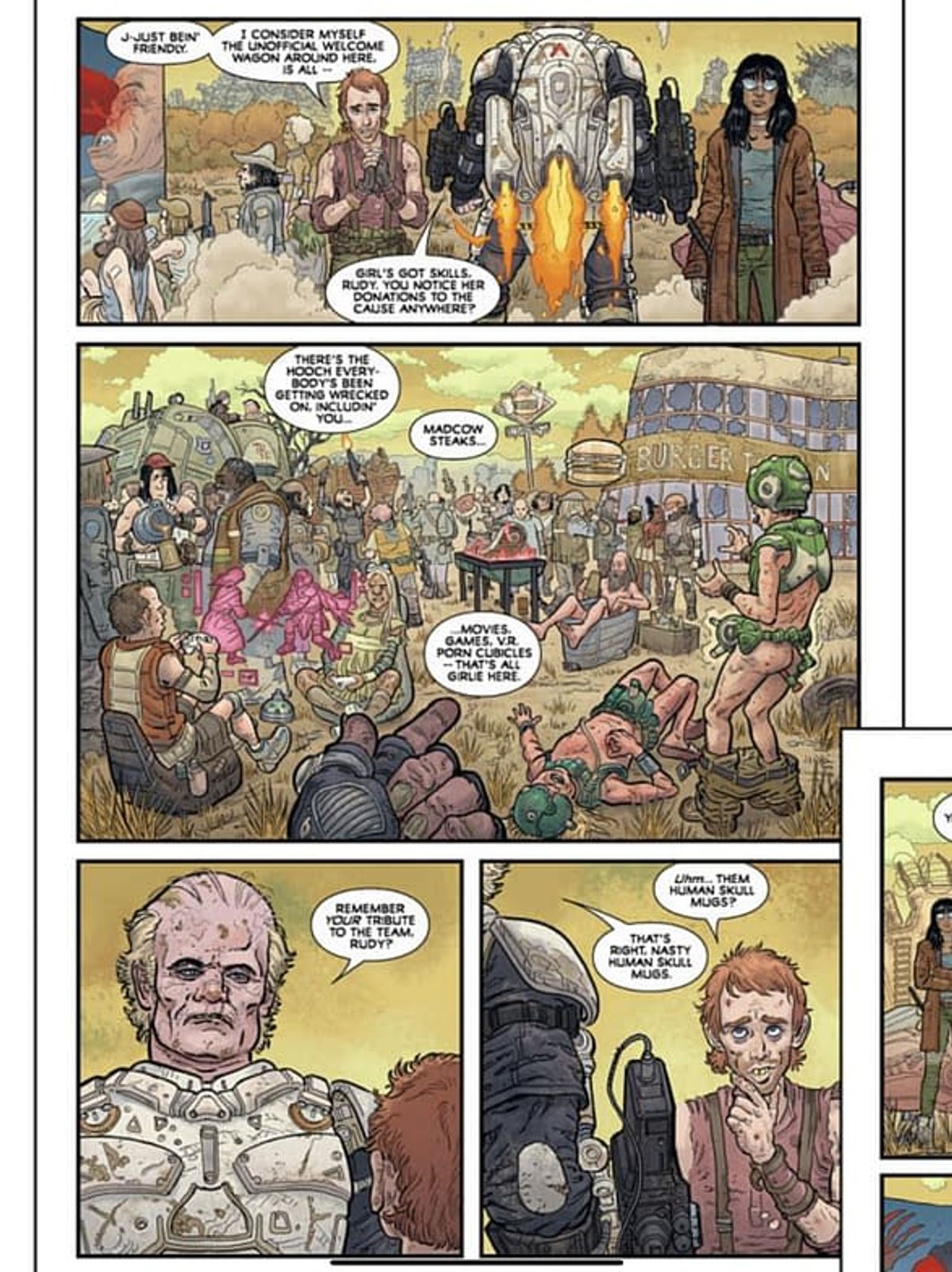 Qui sotto potete vedere la copertina e alcune tavole del primo numero:The Bubble, l'installazione costruita sul monte Cheyanne, è il bunker più sofisticato del mondo. È stato costruito per garantire la sopravvivenza del reparto esecutivo del governo americano e dei suoi cittadini più importanti, qualora accadesse l'impensabile. Quando il mondo finì, il reparto esecutivo non riuscì a raggiungere il santuario, ma la cittadinanza d'élite sì. Ottant'anni dopo, uno di loro si è auto-nominato nuovo presidente degli Stati Uniti. Il suo piano? Sottomettere i sopravvissuti della desolata America utilizzando le stesse risorse del bunker che dovevano servire per ricostruirla. L'unico ostacolo che li separa dal realizzare questo obiettivo è una letale ragazza cresciuta nel deserto postapocalittico che è in cerca di vendetta!