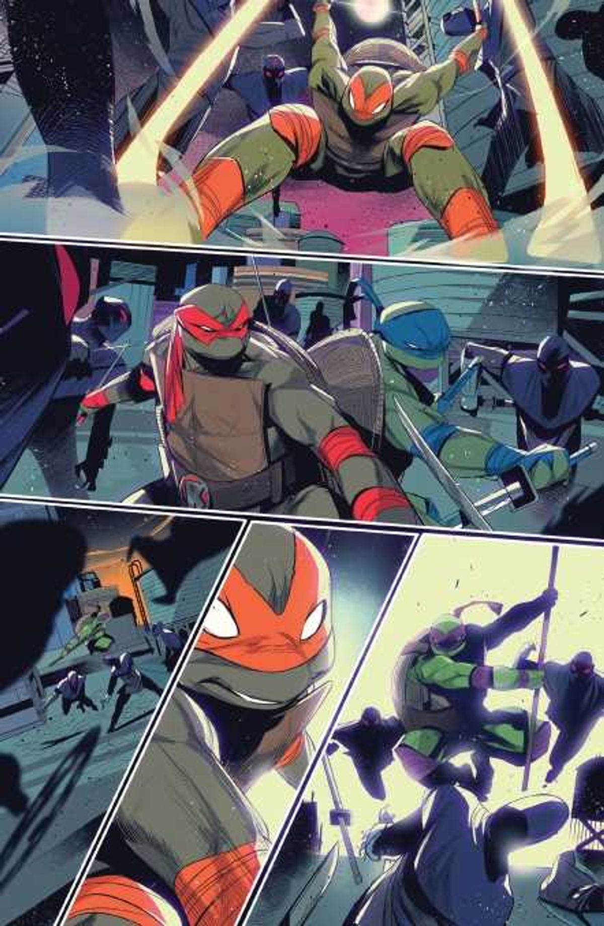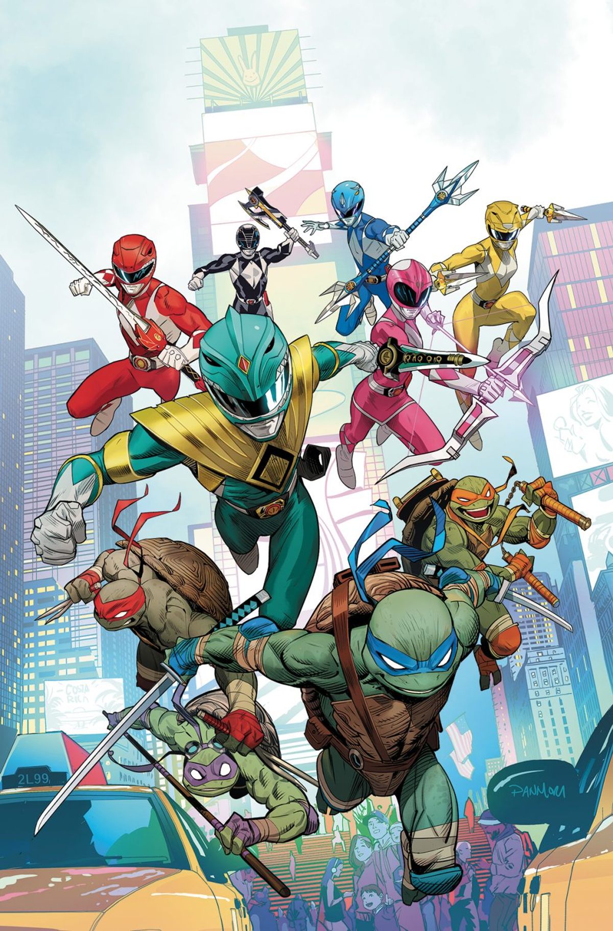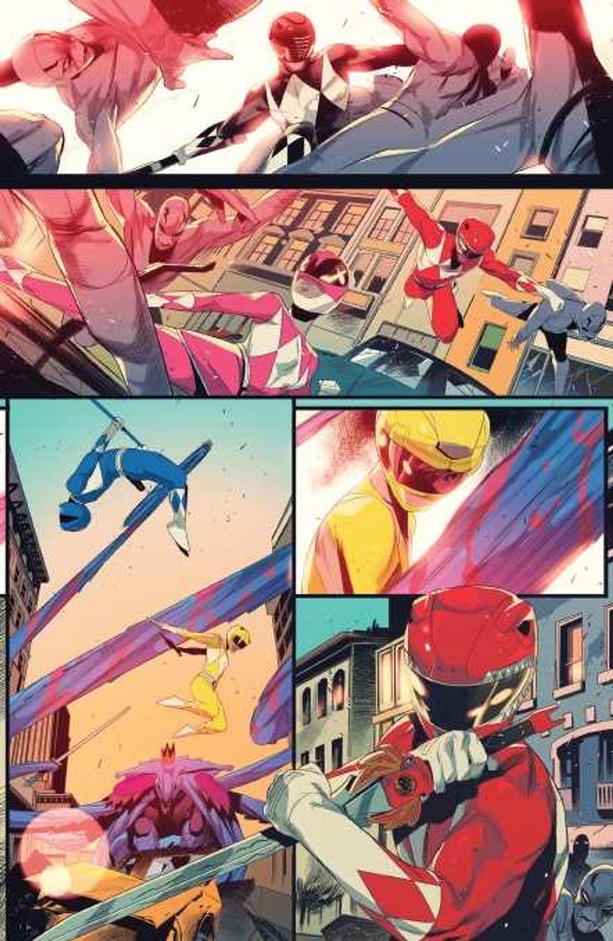 Donatello, Michelangelo, Leonardo e Raffaello incontreranno la formazione originale dei Ranger - Jason Lee Scott, Zack Taylor, Billy Cranston, Trini Kwan e Kimberly Ann Hart - giunta a New York sulle tracce del loro amico Tommy Oliver.Trovate le prime tavole di Mighty Morphin Power Rangers/Teenage Mutant Ninja Turtles #1 dopo la sinossi dell'albo: