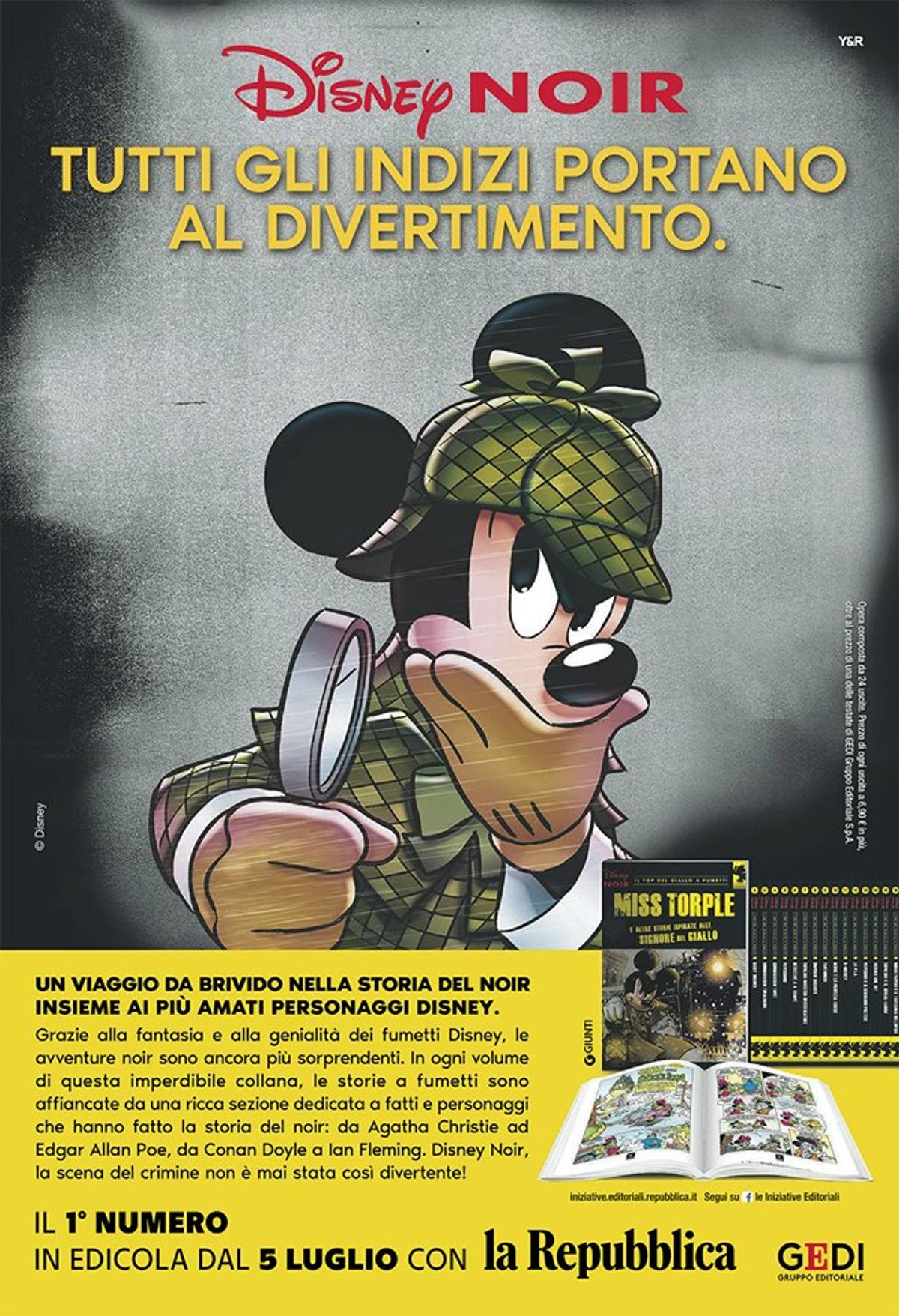 Giovedì 5 luglio, in allegato con Repubblica, debutta la collana Disney Noir. Si tratta della nuova iniziativa editoriale del quotidiano romano, in collaborazione con Giunti, dedicata alle avventure poliziesche di Topolino, Paperino e il resto della famiglia Disney.