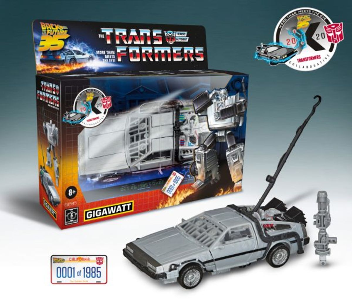 Il nuovo personaggio Gigowatt sarà proposto sotto forma di action figure da Hasbro, messa in commercio su Walmart.com in una tiratura limitata a 1985 pezzi (in omaggio all'anno di uscita del primo film della trilogia). L'Autobot si potrà trasformare nella macchina del tempo in 17 passaggi; tra i dettagli che lo caratterizzano possiamo riconoscere il flusso canalizzatore della DeLorean sul petto, degli occhiali simili a quelli di Doc Brown, un display temporale e delle ruote in grado di passare da verticali a orizzontali, per volare come nel finale di Ritorno al futuro.Marty McFly è appena tornato a casa sua, la Hill Valley del 1985, e tutto sembra a posto... fino a quando la macchina del tempo di Marty e del suo amico Doc Brown attira l'attenzione dei Decepticon! A causa di un piccolo errore, Marty si ritrova catapultato in un'avventura per fermare il piano dei Decepticon nel passato, presente e futuro... tutto con l'aiuto di una nuova macchina del tempo: l'Autobot Gigowatt!