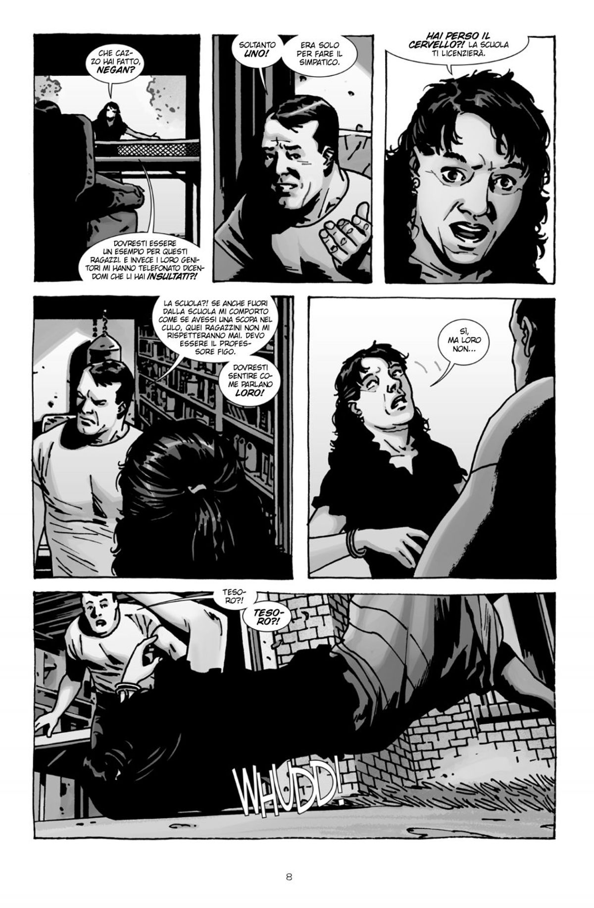 Di seguito trovate la sinossi e le prime dodici pagine di Negan è qui!, fumetto scritto da Robert Kirkman (che sarà presente all'evento toscano) e disegnato da Charlie Adlard.Chi è Negan? Dal suo debutto nel numero 100 della serie regolare americana di THE WALKING DEAD, lo psicopatico e carismatico leader dei Salvatori si è contrapposto con violenza a Rick e ai suoi. Ma chi era Negan prima che la società crollasse sotto l'assalto dei non morti? NEGAN È QUI! risponde in maniera sorprendente a questa domanda, raccontando per la prima volta le origini del personaggio creato da Robert Kirkman.