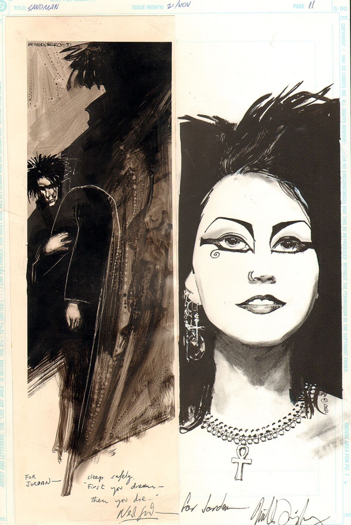 Mike Dringenberg, tuttavia, aveva le sue idee al riguardo, e così mi inviò un disegno basato su una donna che conosceva di nome Cinamon Hadley (l'immagine sarebbe apparsa più tardi su Sandman #11). Gli diedi un'occhiata e la reazione immediata fu: "Wow! È fantastica".Più tardi, quel giorno, Dave McKean e io andammo a cena al My Old Dutch Pancake House di Chelsea e la cameriera che ci servì fu una sorta di visione: era americana, aveva lunghi capelli neri, era vestita completamente di nero, dai jeans alla maglietta, e indossava una grossa croce egizia d'argento su una collana dello stesso metallo. Era totalmente identica al disegno di Death di Mike Dringenberg.