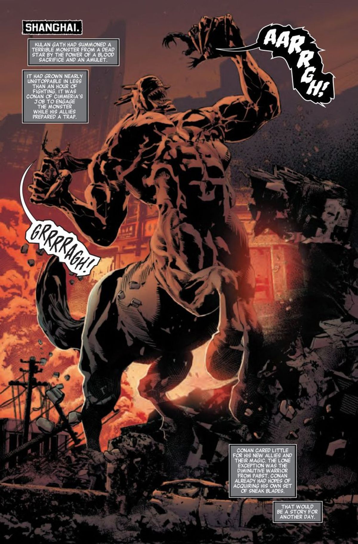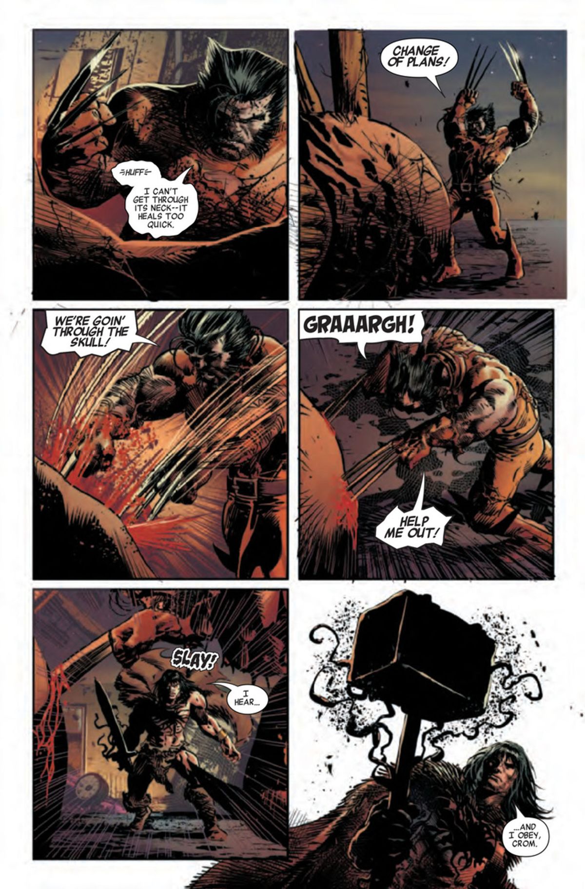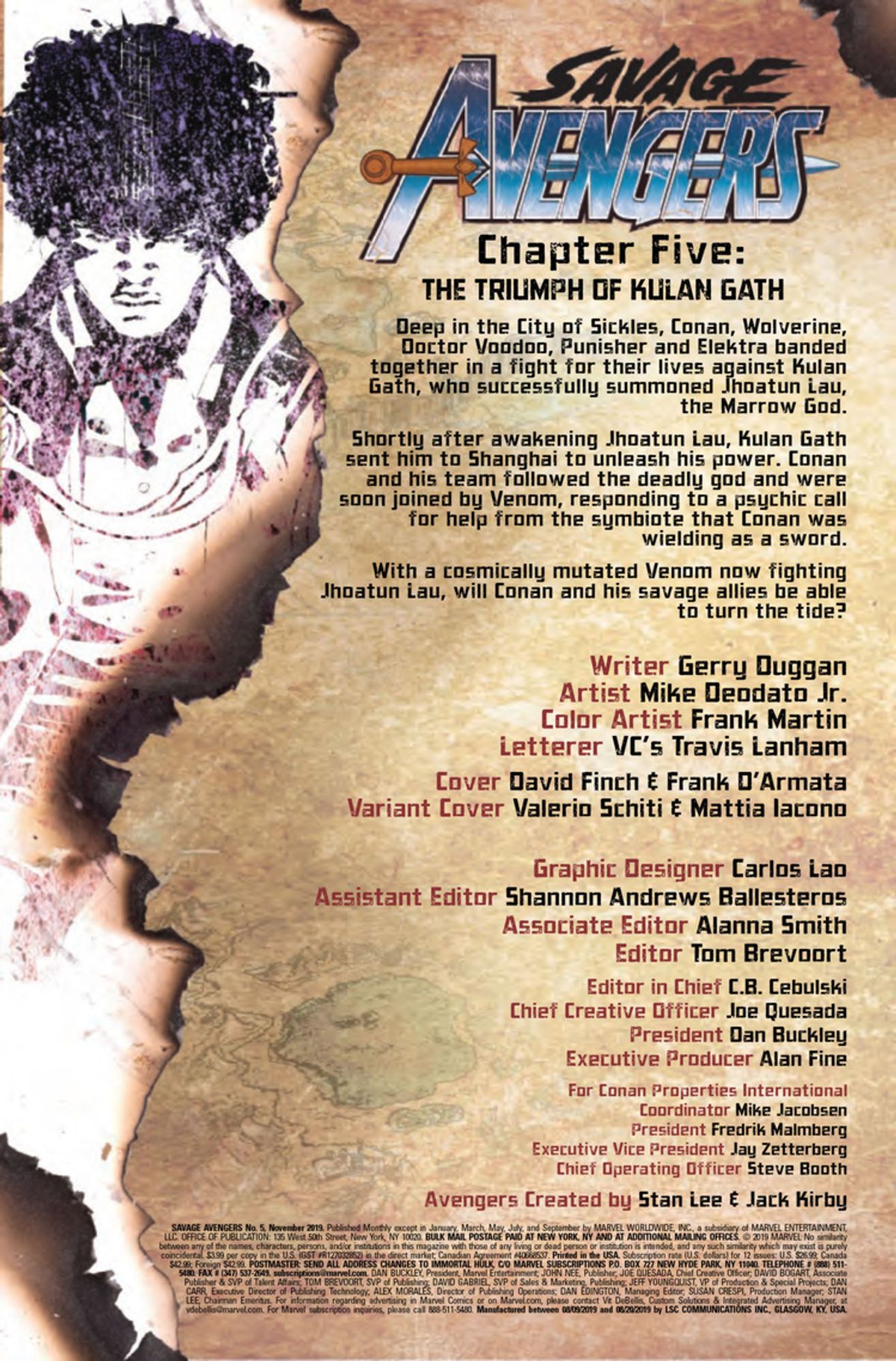 Stando alle solicitation relative alle uscite di ottobre e novembre, il numero #5 del titolo – disponibile dal 4 settembre nelle fumetterie statunitensi – sarà l’ultimo disegnato da Deodato Jr. A ottobre, infatti, le tavole di Savage Avengers porteranno la firma di Kim Jacinto (Sentry) e il mese dopo quella di Patrick Zircher (Cable/Deadpool).Nel frattempo, sono state diffuse alcune pagine di Savage Avengers #5, che ci offrono uno spaccato di questo bizzarro titolo in cui personaggi come Conan il Barbaro, Wolverine, Venom, il Punitore, Elektra e Fratello Voodoo fanno gruppo per affrontare il terribile Dio del Midollo. La storia è ambientata a Shanghai, dove il gruppo sta affrontando Jhoatun Lau.