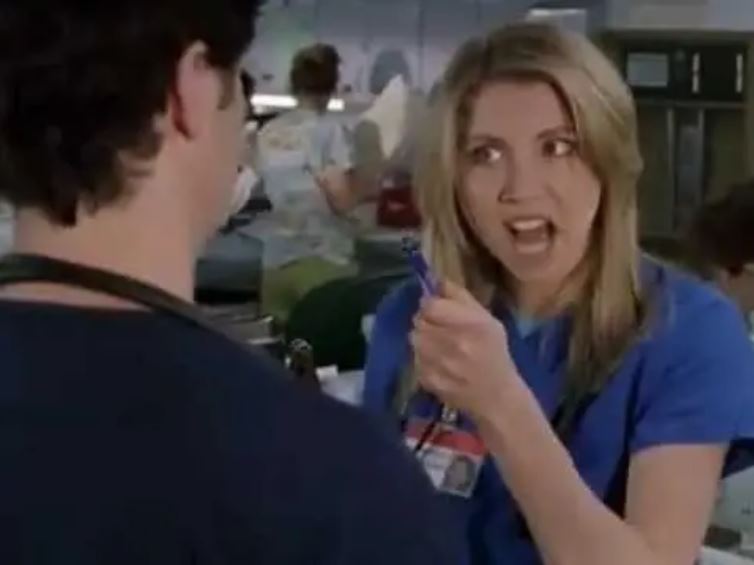 La scena in questione arriva mentre JD cerca di ricostruirsi una vita sentimentale dopo il divorzio da Elliot. Nel lobby dell'ospedale nota una ragazza che suona l'arpa e, contro ogni aspettativa, il suo tentativo di flirtare non si trasforma nel solito disastro grottesco. Dopo qualche battibecco sul fatto che dormire con lei possa o meno violare qualche regola ospedaliera, JD si ritrova nell'appartamento della sua "angel".