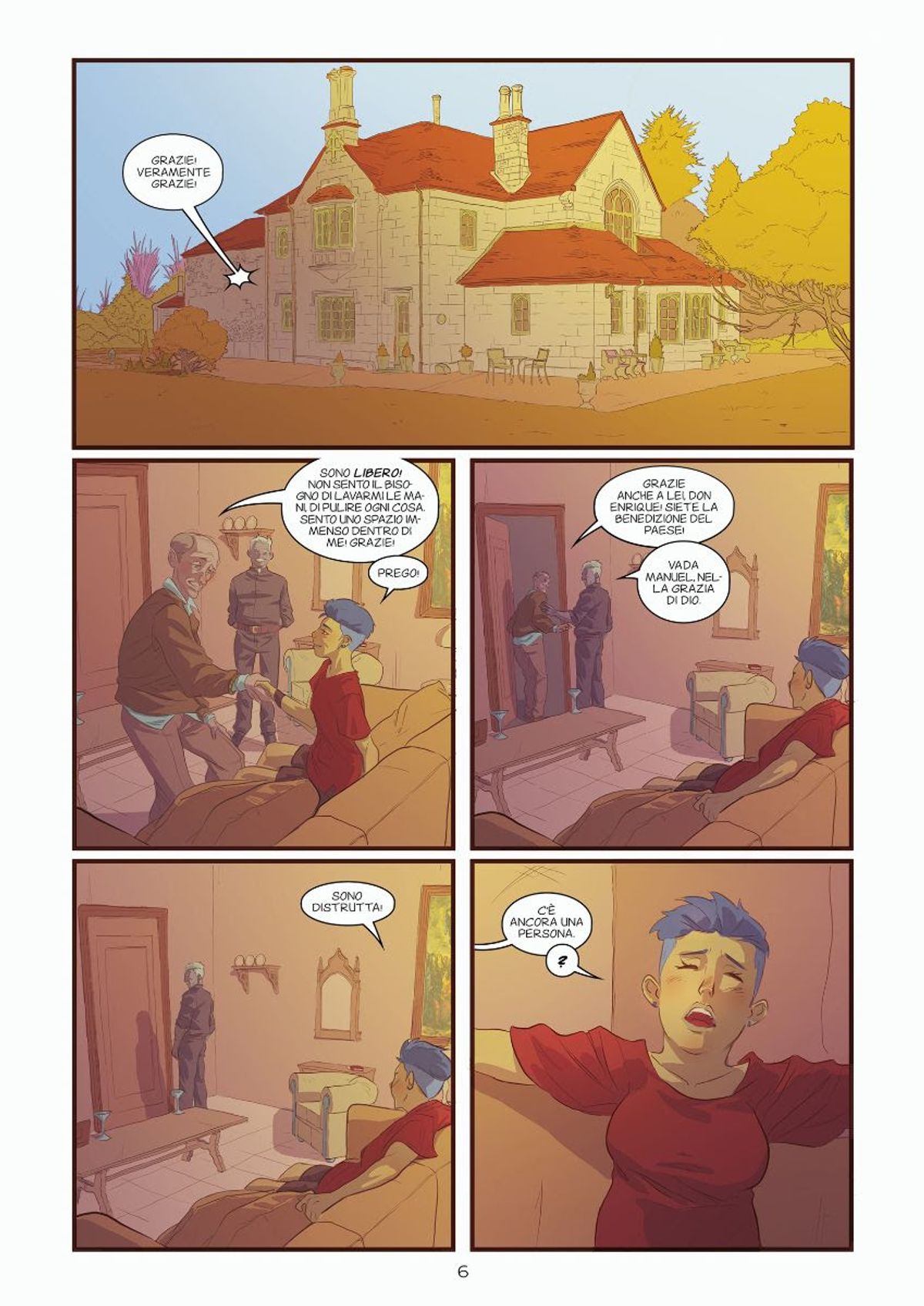 Aggiunge Avella: “Tiresia è una storia sorprendente. Fatta di sguardi, dialoghi, pensieri espressi o soffocati, fino a farlo esplodere in colorate ed atroci conseguenze. È stato un piacere ed un onore raccontare coi disegni la storia di questa ragazza così piena di pressioni, fino alla sua sofferta liberazione.”