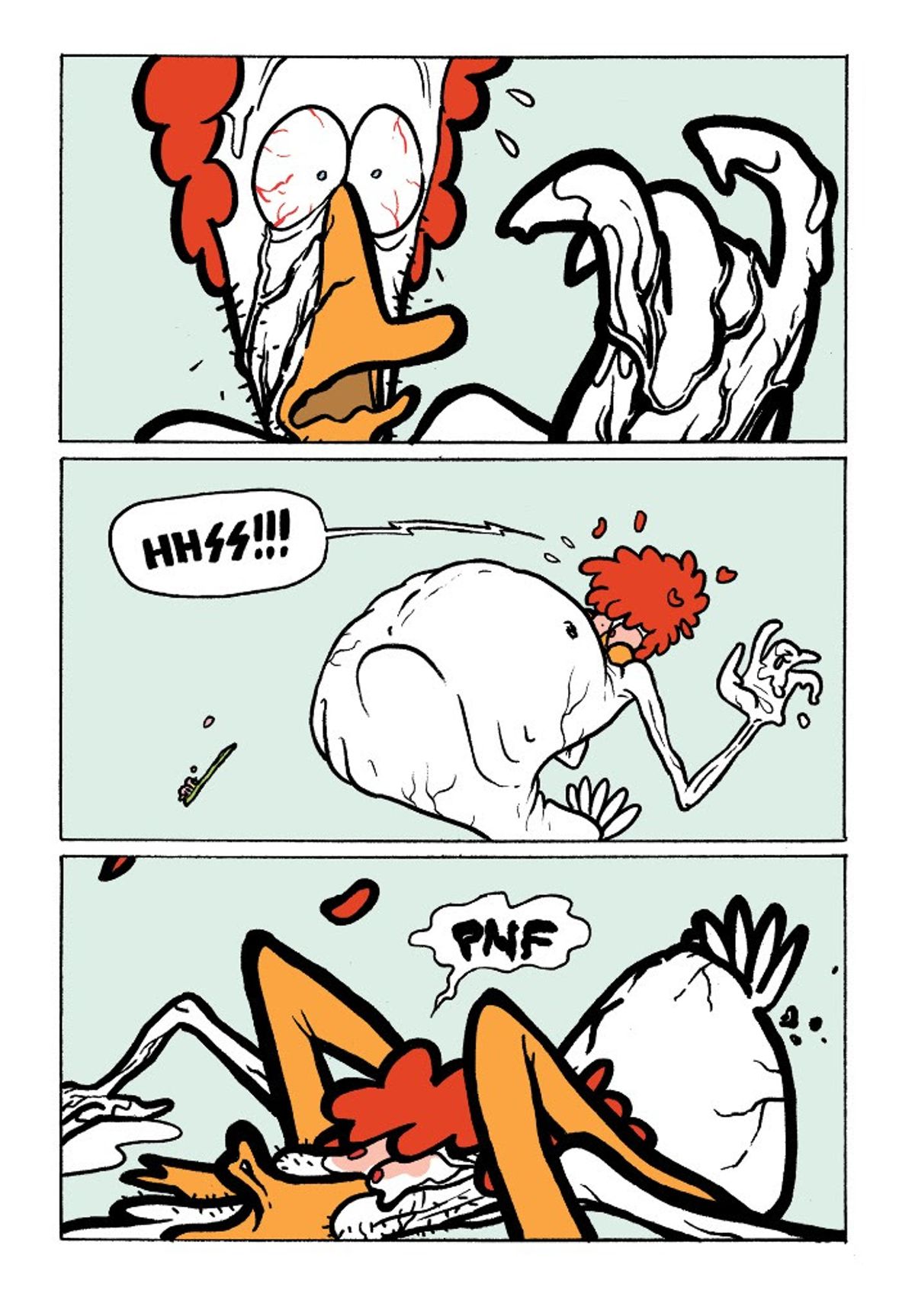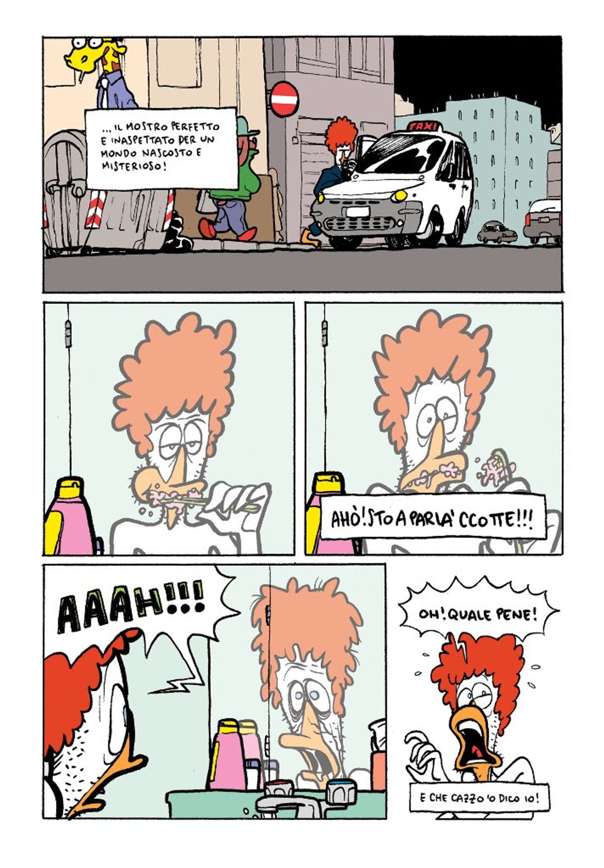 Shockdom pubblica il 7 settembre il nuovo, pungente volume di Alessio Spataro ‘Le Avventure Rossobrune Di Ego Fuffaro’. È la storia di un giovane papero frustrato, conformista, compulsivo coi social network e pieno di sé. Minuto e nato senza spina dorsale, Ego Fuffaro subisce sin da giovanissimo le angherie dei bulli della scuola chiudendosi in sé stesso (amandosi anche fisicamente con pose dannunziane, grazie alle poche ossa del suo busto) e covando risentimento verso il mondo che gli sta intorno, atteggiandosi spesso a pallone gonfiato. Da adulto Ego è una stella della stessa tv che critica, si espone narcisisticamente sui suoi profili in rete ripetendo compulsivamente le stesse cose e spesso viene attratto suo malgrado dal mondo di sottosopra, una specie di dimensione parallela e invisibile dove regnano caos, criminalità, razzismo, fascismo. Dopo diversi viaggi improvvisi in questa nuova dimensione, Ego dovrà alla fine confrontarsi con un insetto gigante che si palesa sempre di più come la larva madre di tutte le figure mostruose che animano il mondo di sopra. Ma, forse, il suo vero antagonista non è la zanzara.