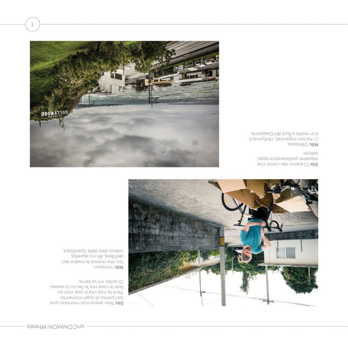 La responsabile editoriale Chiara Zulian racconta: “Sio e Nik sono amici. Lo sono veramente, senza ombra di dubbio. Lo si percepisce subito, da ogni pagina di questo lungo e vivido racconto di quella che, a ragione, i due considerano una vera e propria avventura. Il racconto scritto di Nik descrive tappa dopo tappa il giro del Giappone che i due hanno compiuto in sella alle loro biciclette, dormendo in tenda e mangiando in improbabili e pittoreschi locali, ospiti a casa di amici o in ostelli incrociati lungo la via, le sue bellissime foto di luoghi e paesaggi fanno percepire la magia di questo percorso e le vignette di Sio sottolineano i momenti più divertenti e surreali vissuti dai due. Alla fine della lettura ci si sente divertiti e un po’ invidiosi, ma allo stesso tempo si conserva la sensazione di essere in qualche modo stati davvero lì con loro e di aver vissuto le loro esperienze, il vento contrario, la pioggia e la grandine così come la fatica di pedalare per chilometri, ma soprattutto la bellezza di un’avventura incredibile, vissuta con gioia da due grandi amici.”unCOMMON: Wheels sarà disponibile in fumetteria e libreria dal 21 giugno