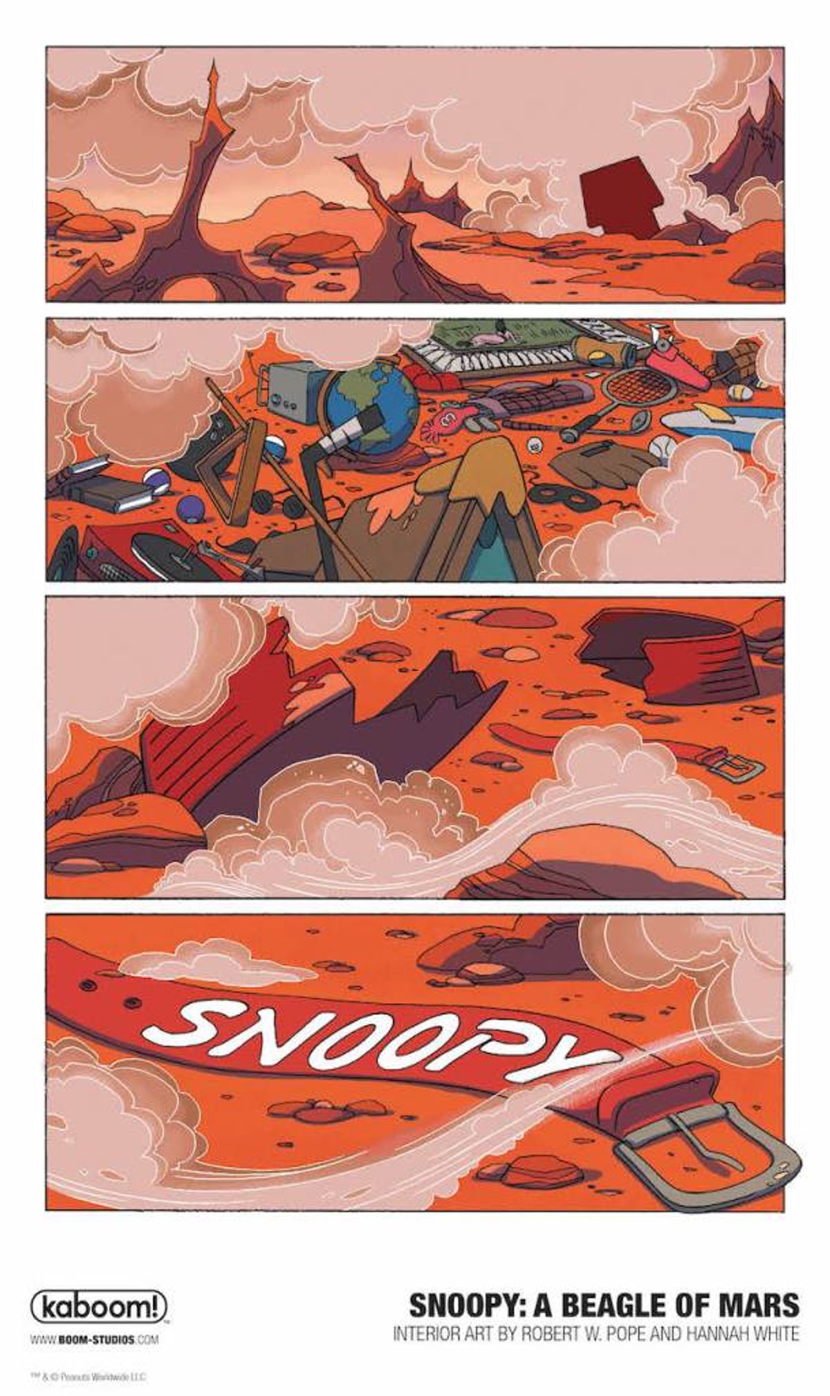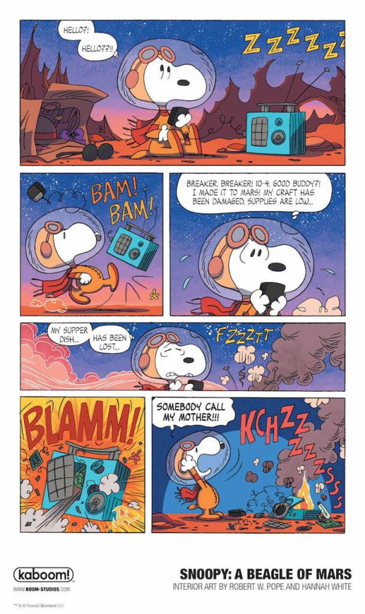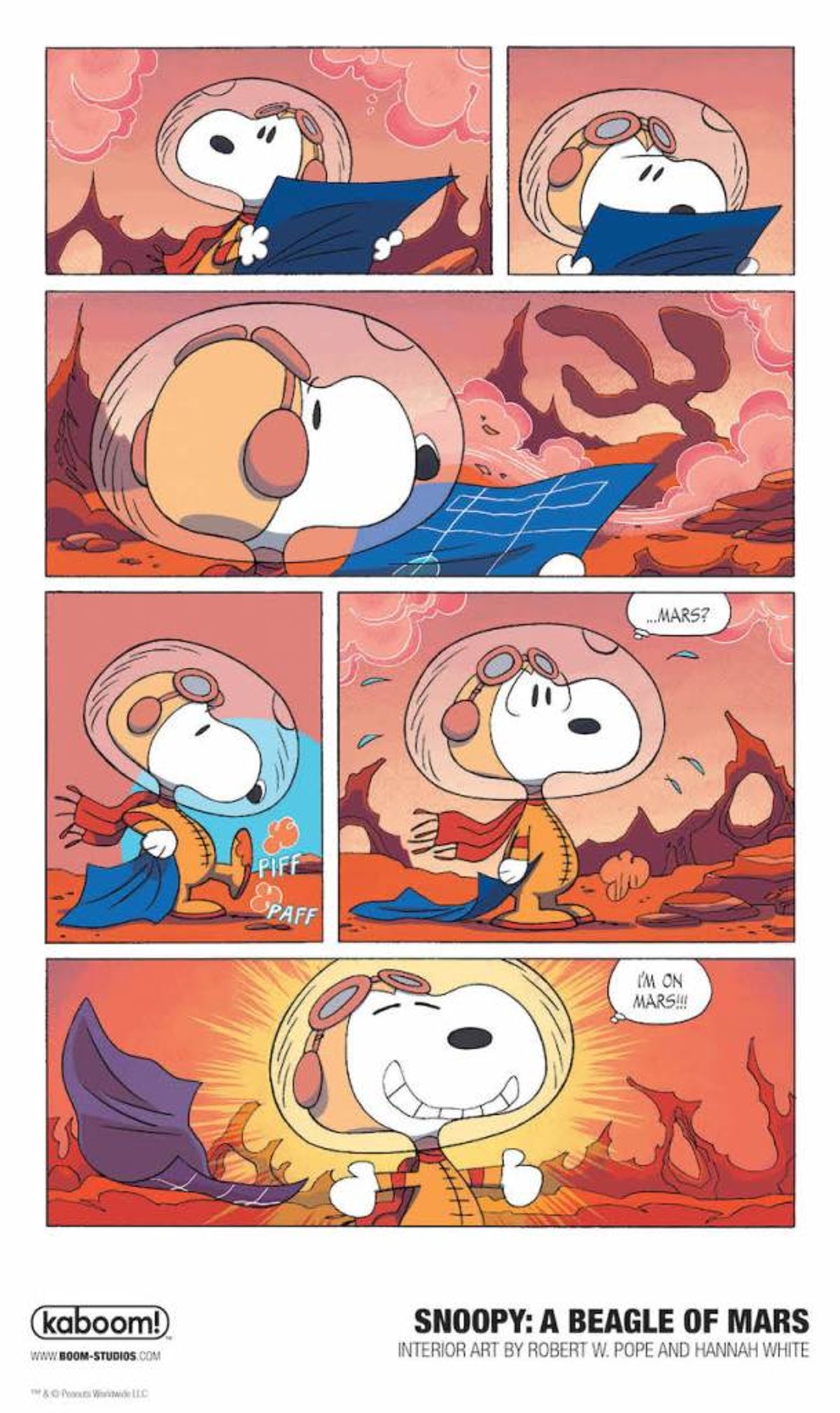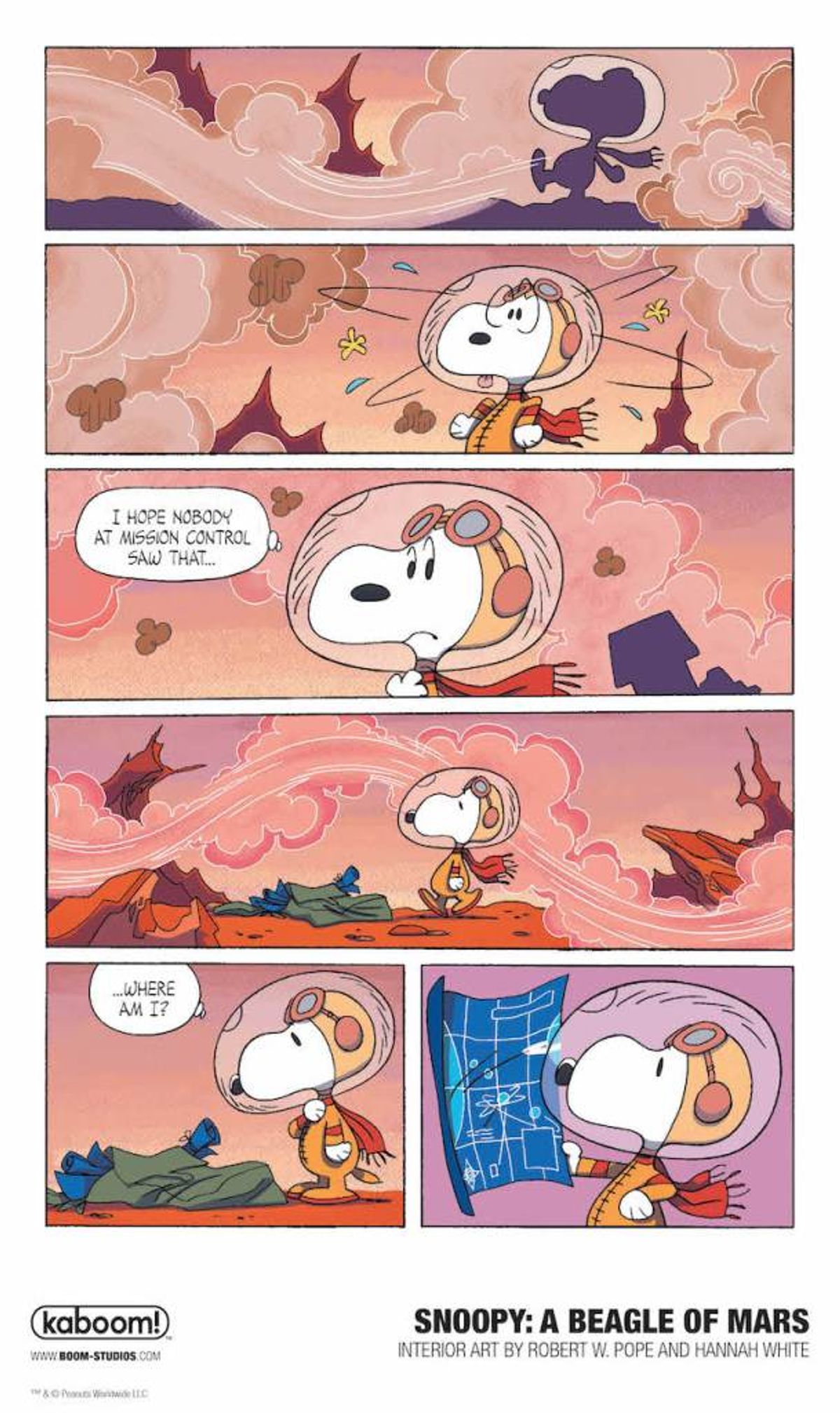 I BOOM! Studios hanno annunciato Snoopy: A Beagle of Mars ("Snoopy: un bracchetto marziano"), nuova graphic novel in cui l'amatissimo cane di Charlie Brown partirà per il viaggio più epico della sua carriera, attraversando l'atmosfera terrestre alla volta di Marte.