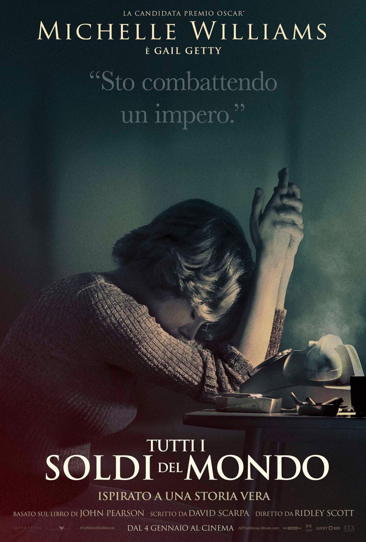 Tutti i soldi del mondo è adrenalinica ricostruzione di un fatto di cronaca realmente accaduto e divenuto un caso mediatico internazionale: il rapimento di Paul Getty III. Roma, 1973. Alcuni uomini mascherati rapiscono un ragazzo adolescente di nome Paul Getty III (Charlie Plummer), nipote del magnate del petrolio Jean Paul Getty (Christopher Plummer), noto per essere l’uomo più ricco al mondo e al tempo stesso il più avido. Il rapimento del nipote preferito, infatti, non è per lui ragione sufficientemente valida per rinunciare a parte delle sue fortune, tanto da costringere la madre del ragazzo Gail (Michelle Williams) e l’uomo della sicurezza Fletcher Chace (Mark Wahlberg) a una sfrenata corsa contro il tempo per raccogliere i soldi, pagare il riscatto e riabbracciare finalmente il giovane Paul. Una vicenda pubblica e privata che sconvolse il mondo per aver rivelato a tutti un’incredibile verità: che si può amare di più il denaro che la propria famiglia. Una storia mai raccontata prima sul grande schermo con la firma del grande Ridley Scott.