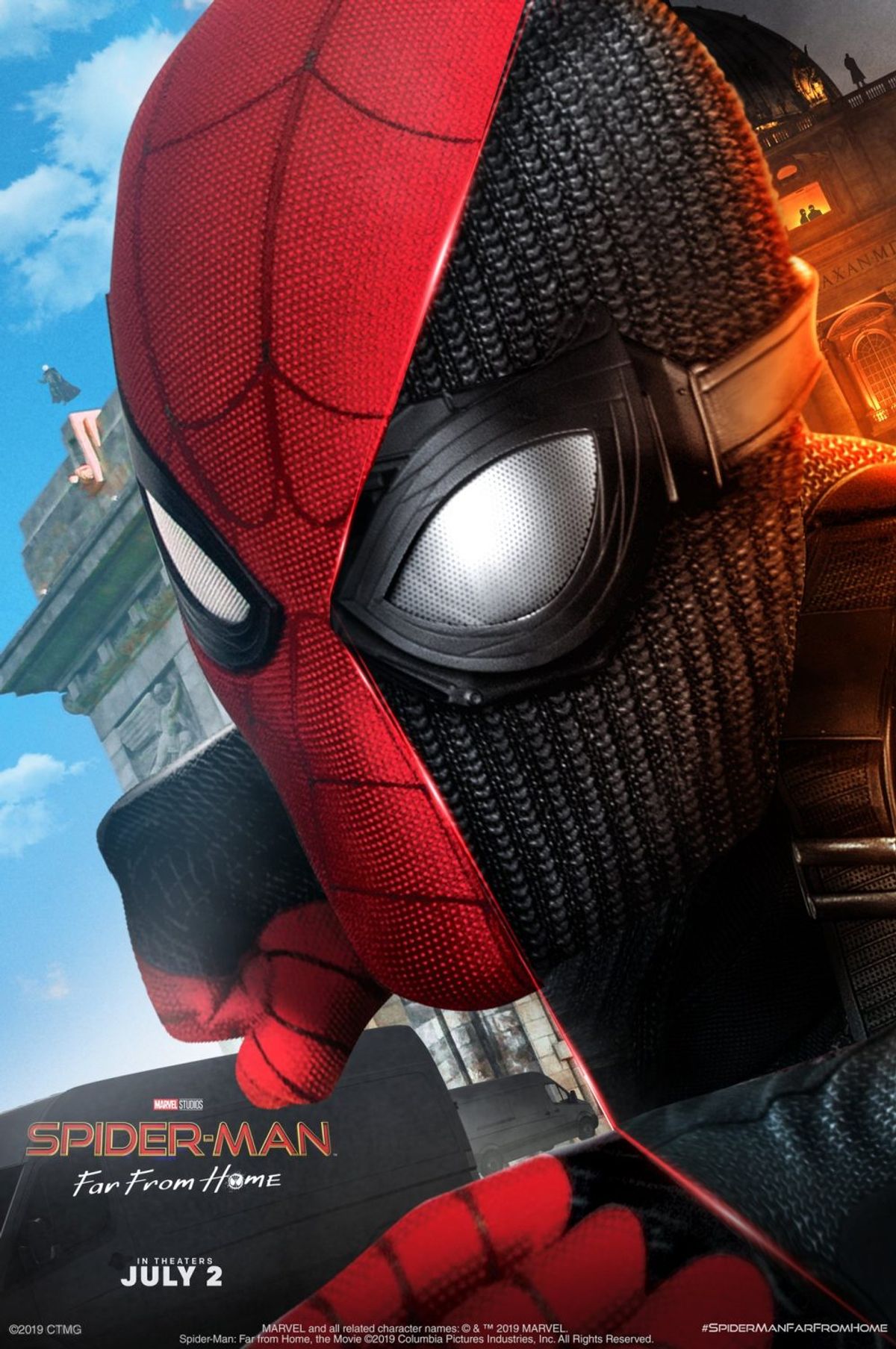 Sono parecchi i poster usciti finora, e tra di essi alcuni erano dedicati ai costumi che indosserà Spidey, come quello stealth. Ma questo è il primo poster che riunisce in una sola immagine sia il costume stealth che quello rosso e nero "potenziato" che Peter costruisce da solo. Sullo sfondo, sia Nick Fury che Mysterio.