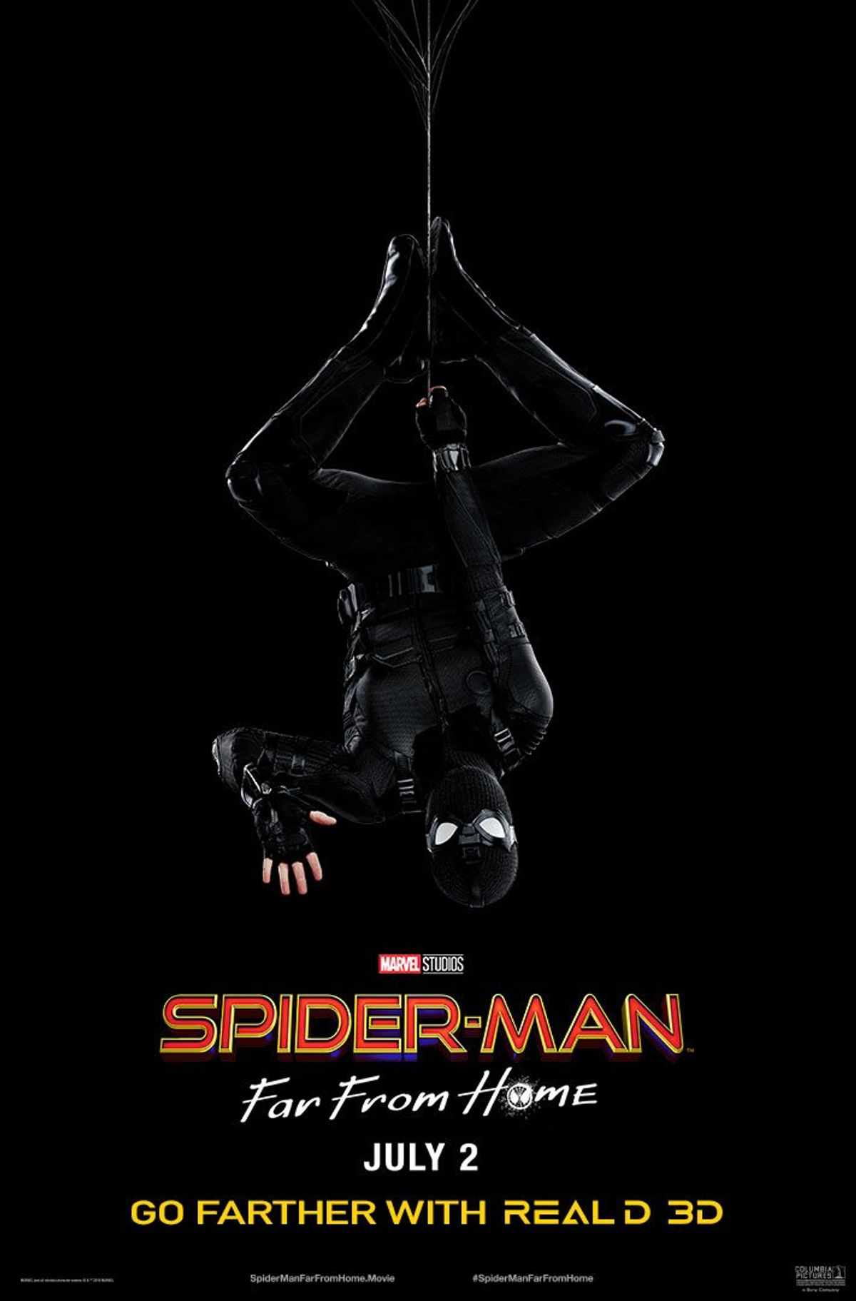 Entrambi i poster, che verranno consegnati presumibilmente alle anteprime dei film nei rispettivi circuiti, mostrano Spidey con il costume stealth, svelato diversi mesi fa nei materiali ufficiali. "È ispirato a una serie di look nei fumetti," aveva commentato qualche mese fa il produttore Eric Carroll. "C'era il classico costume stealth, ma ovviamente quando Ryan Meinerding ha progettato il look di questo costume aveva in mente tutti i vecchi agenti dello SHIELD, quindi pensava anche a Vedova Nera e Occhio di Falco. [...] Abbiamo creato un costume stealth fichissimo, ma il regista Jon Watts voleva renderlo meno fico, e così ha chiesto di inserire questi occhialoni un po' anni ottanta. Tom Holland deve muoverli a mano, non sono automatici!"