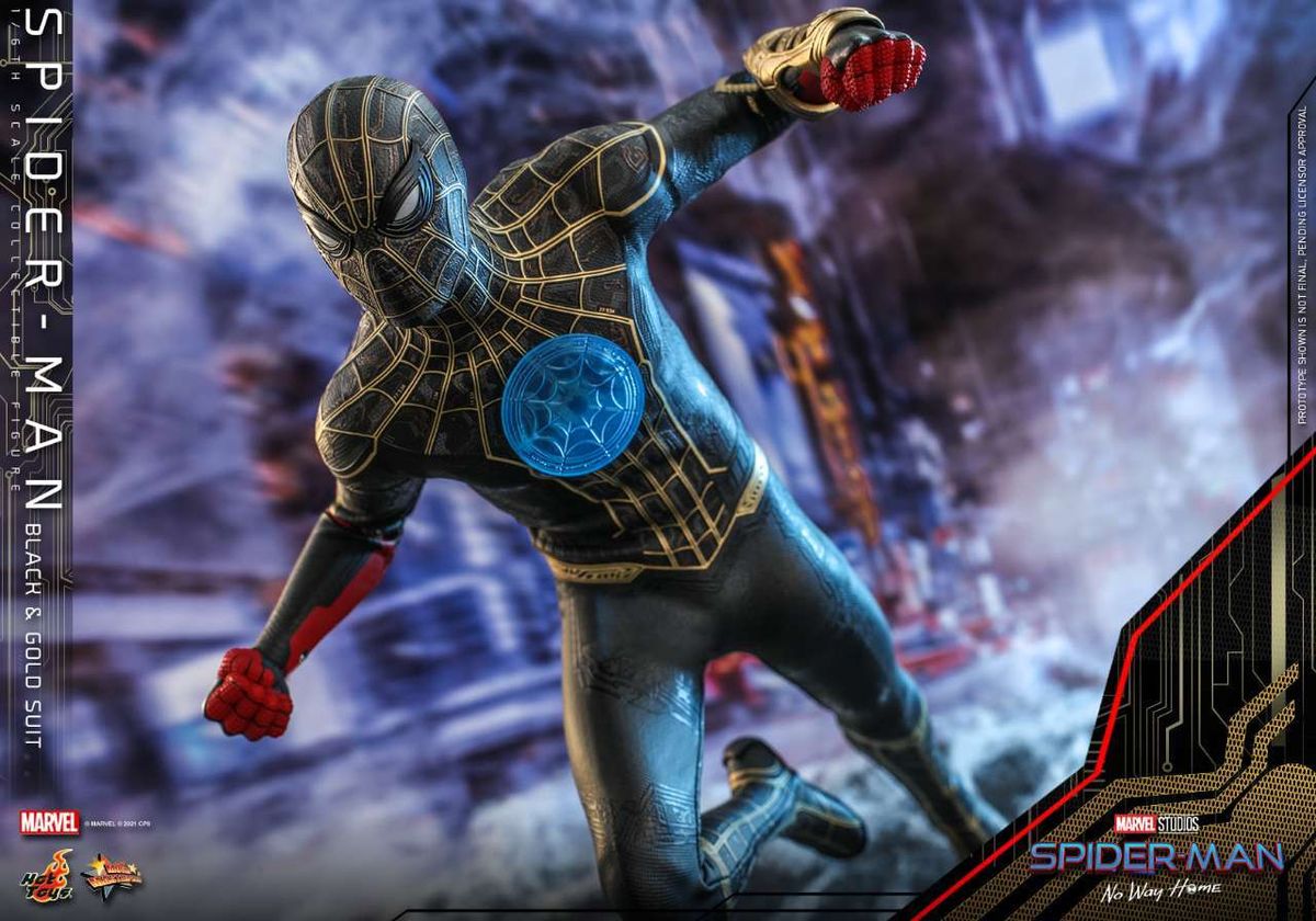 Spider-Man: No Way Home, uno sguardo ravvicinato al costume nero e oro svelato dalla Hot Toys