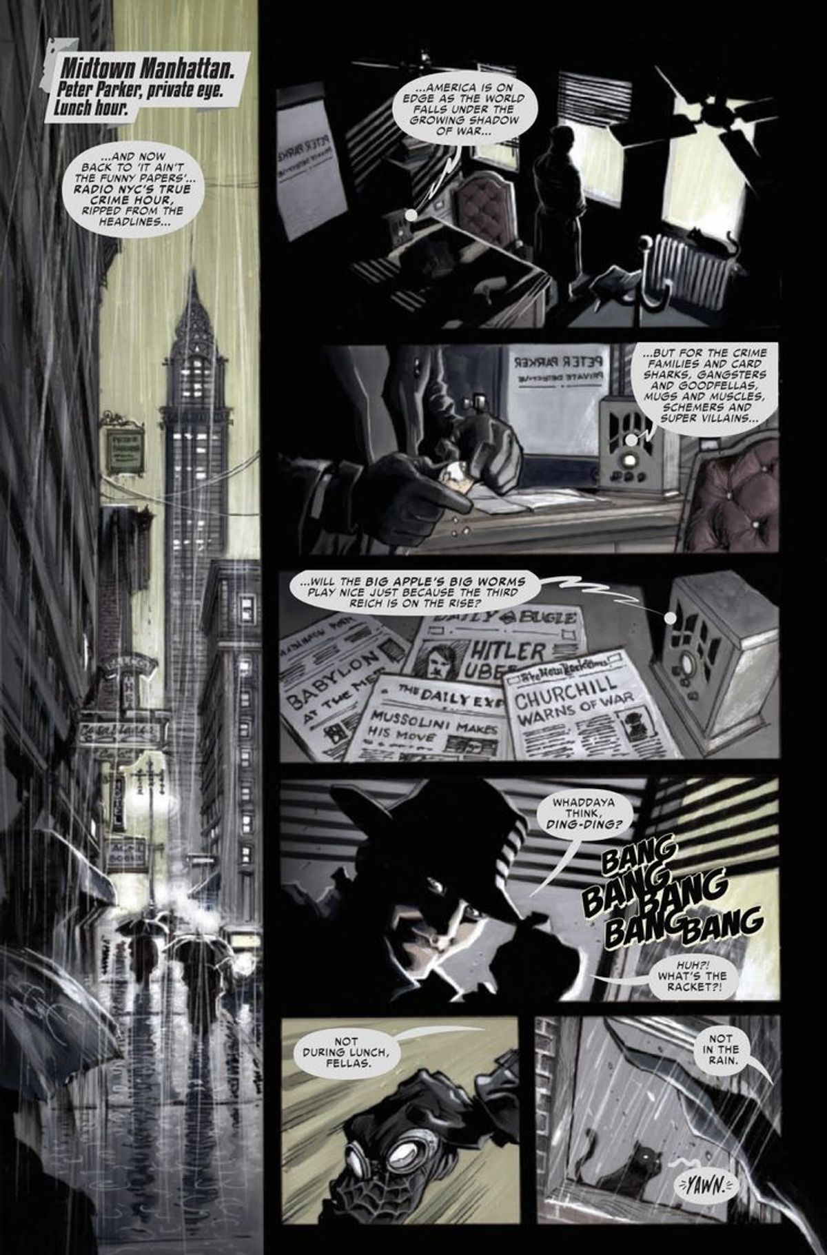 Questa rivisitazione del Tessiragnatele è stata proposta per la prima volta nel 2009 nella miniserie Spider-Man: Noir, scritta da David Hine (Spawn) e Fabrice Sapolsky (One-Hit Wonder) per i disegni di Carmine Di Giandomenico (All-New X-Factor), e in seguito proposta in Italia da Panini Comics nella collana dedicata alla linea Marvel Noir e poi all’interno della Spider-Man Collection.