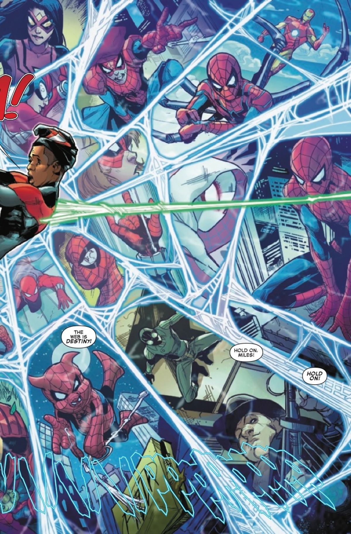Miles Morales si stava finalmente sentendo a suo agio con la faccenda di Spider-Man… ma poi cade attraverso un portale! La Tela della vita e del destino non era mica andata distrutta? Forse no, Veri Credenti. Ma chi ha costruito questa nuova tela? A prescindere da tutto ciò, Miles si troverà al centro di un’avventura multiversale che metterà sotto i riflettori una serie di grandi autori e personaggi!