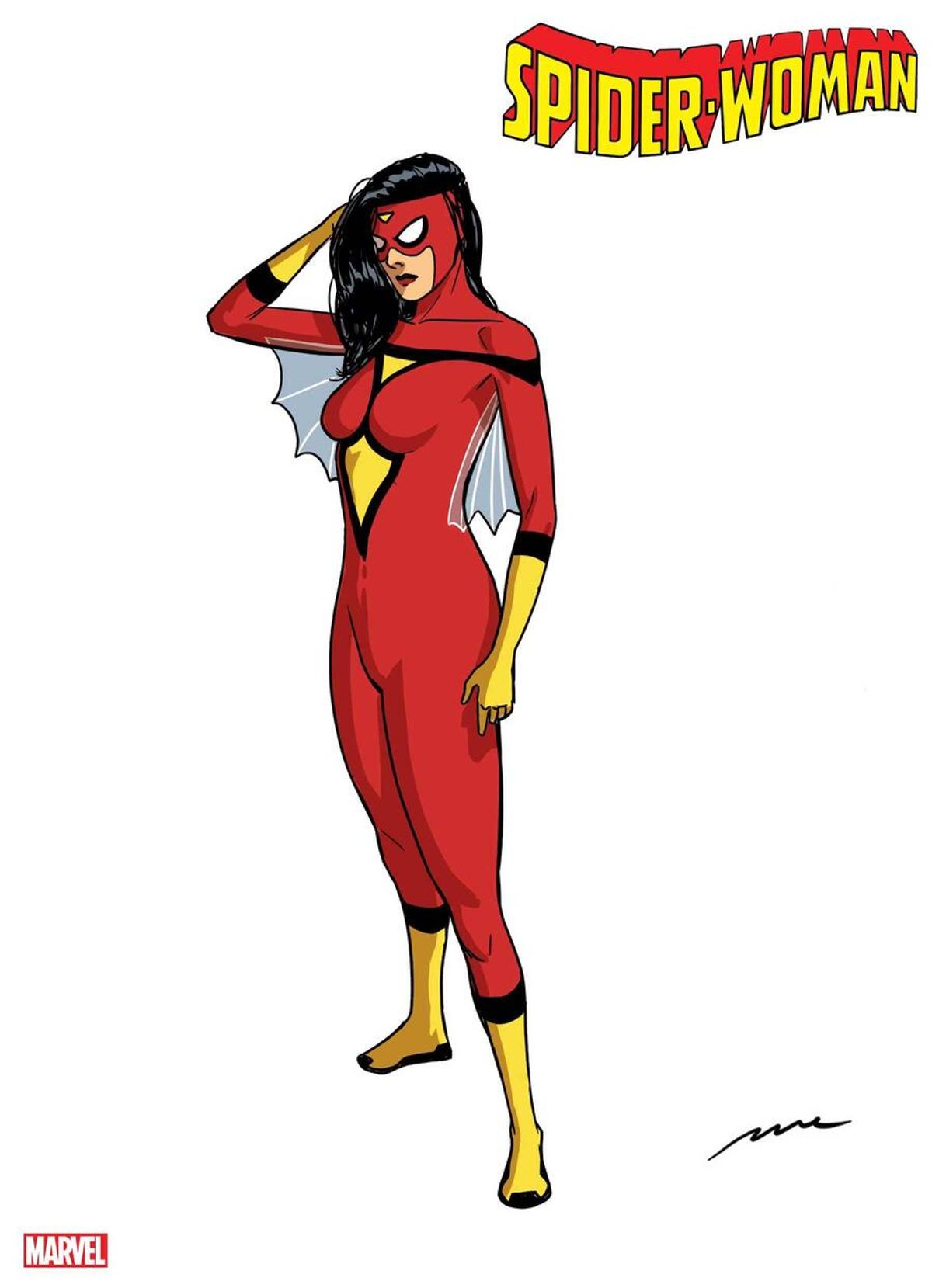 Una delle cose che volevo fare da parecchio tempo è lasciare il mio marchio personale su di un personaggio Marvel, cosa che ho la possibilità di fare con questo costume classico, ma un po' aggiornato, di Spider-Woman. Entrare a far parte del retaggio di coloro che contribuiscono a dar forma a un'eroina così amata è una gran bella sensazione.