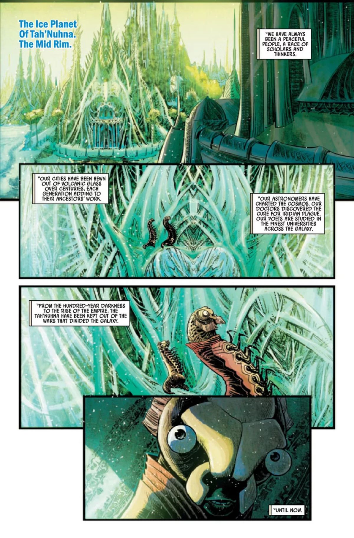 [Riguardo la possibilità di vedere dei personaggi inaspettati nel fumetto] Avrei voluto rispondere dicendo qualcosa tipo: "Così vi rovinerei la sorpresa", ma poi ho visto che la variant cover di Will Sliney è stata diffusa online, quindi è noto che Kendoh e la sua banda, direttamente dal fumetto Galaxy's Edge, sono tra gli antagonisti della storia. C'è anche un nuovo, grande personaggio che debutterà in questa miniserie e che sarà presto mostrato sul grande schermo.