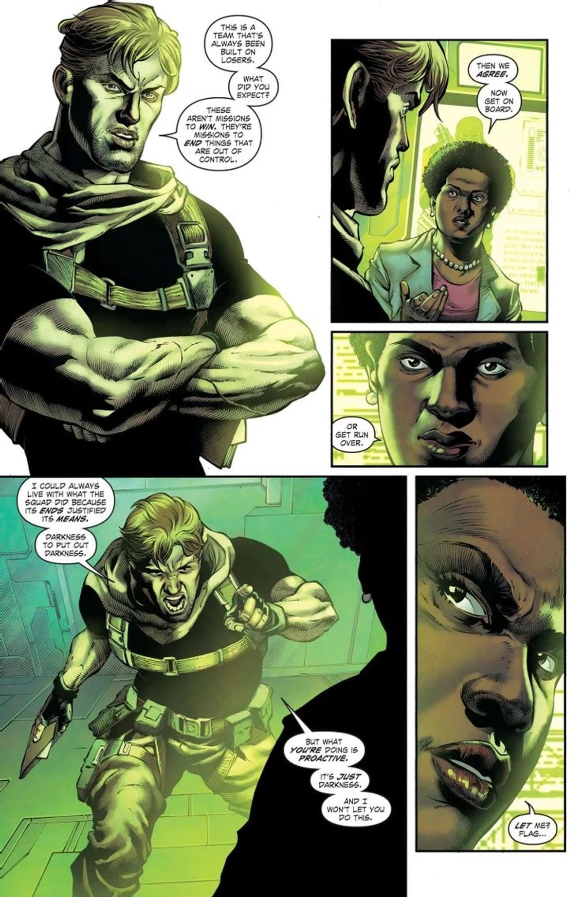 Dal prossimo 2 marzo, invece, assisteremo al rilancio del titolo, con Peacemaker diventato leader sul campo della Task Force X e Amanda Waller nel suo abituale ruolo di coordinatrice. Il primo arco narrativo si intitola Assault on Arkham e vede i Nostri recarsi presso il noto manicomio criminale di Gotham City per cercare di reclutare Talon, un assassino della Corte dei Gufi.