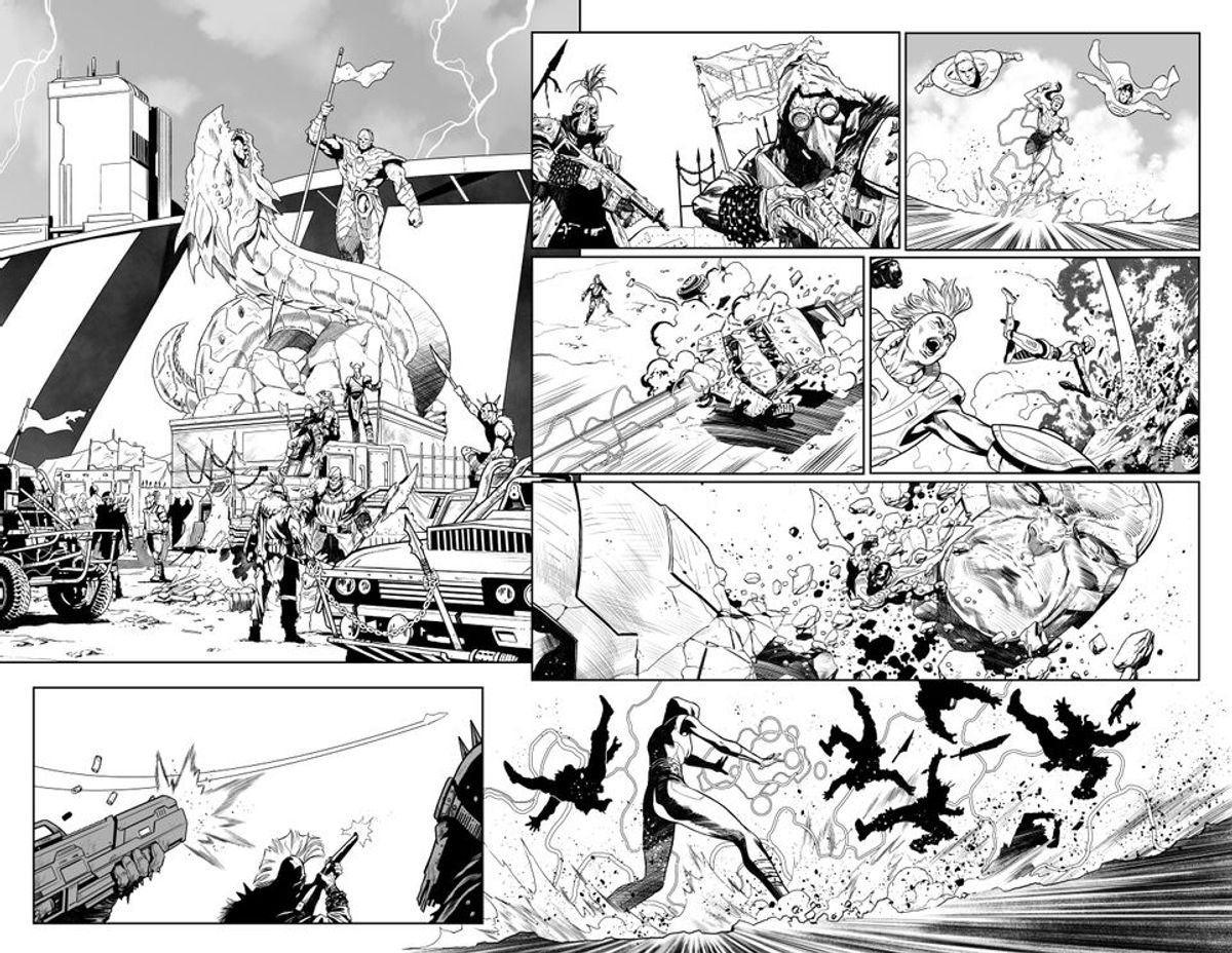 Lui e Mikel Janin raccontano una storia molto specifica su Superman & the Authority, mentre io e Daniel Sampere abbiamo la nostra su Action Comics. Grant è stato generoso nel fare qualche aggiustamento alle sue trame per farle collimare con le mie e ho cercato di restituire il favore. Amo il cast dei personaggi che abbiamo in comune, la dinamica che c'è nella nuova Authority, e mi sto divertendo un mondo con loro. Spero che io e Grant avremo modo di lavorare assieme ancora.