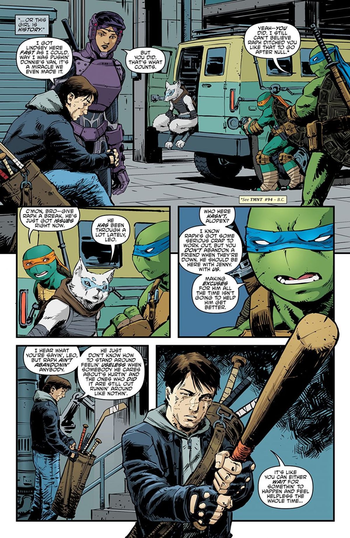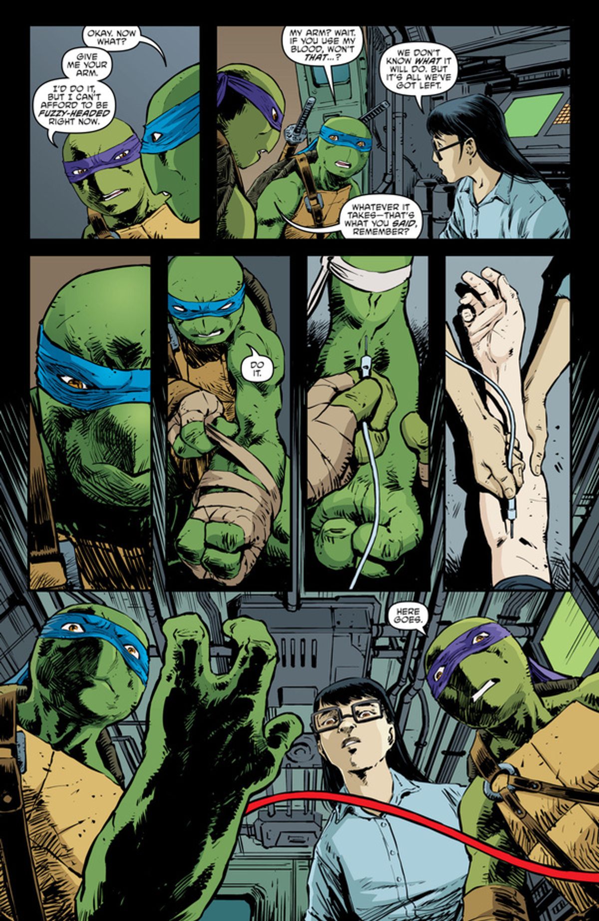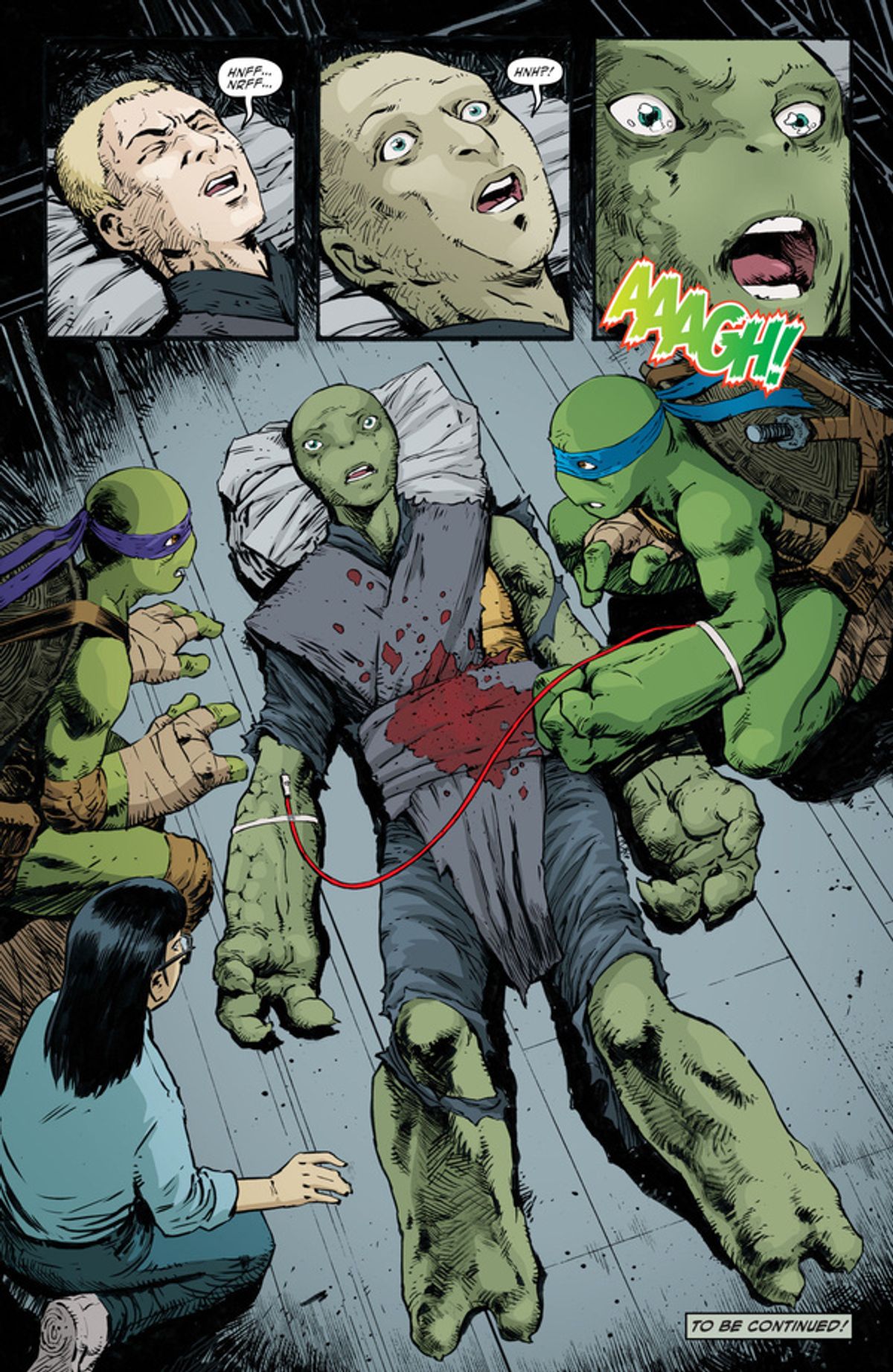 Si tratta - ovviamente - della prima Turtle femmina solo per quanto riguarda la continuity fumettista targata IDW, dato che in passato il franchise ha già proposto altri casi analoghi, come April O'Neil in versione mutata (nella serie Archie Comics) e Mei Pieh Chi, alias Venus de Milo, nella serie televisiva Ninja Turtles: The Next Mutation.La IDW, lo sceneggiatore Waltz e l'artista Sophie Campbell hanno twittato alcune immagini della nuova componente del gruppo, ora divenuto un quintetto: le trovate nella gallery sottostante, insieme ad alcune tavole di TMNT #95.