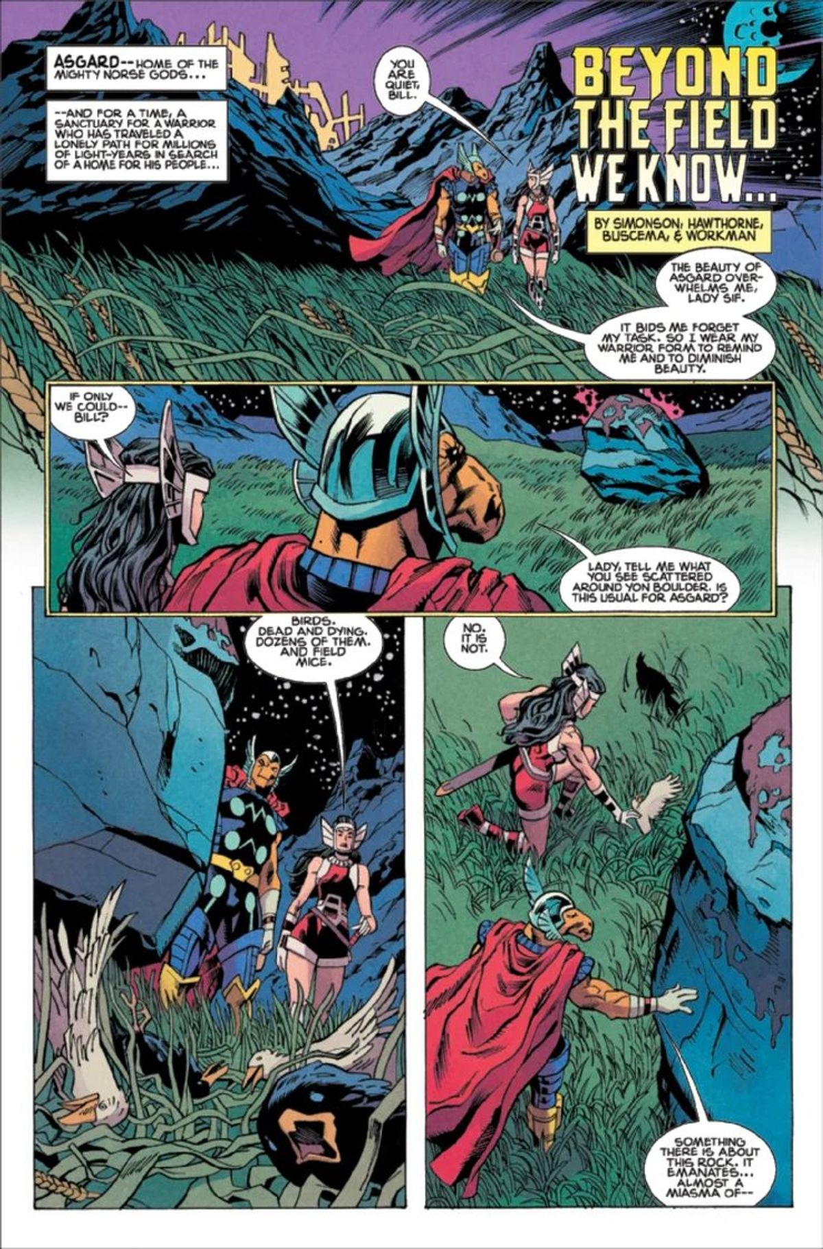 La lista degli autori coinvolti prosegue con Tom DeFalco e Ron Frenz, firme di un altro classico ciclo narrativo di Thor, mentre Kathryn Immonen torna a occuparsi di Lady Sif dopo averla posta sotto i riflettori sulle pagine di Journey Into Mystery. I disegni di quest'ultima avventura sono di Tom Reilly, e osservando le prime pagine diffuse dalla Marvel non possiamo fare a meno di notare la presenza di una Jane Foster ancora degna di impugnare Mjolnir.Vi ricordiamo che se la copertina regolare del one-shot è opera di Kim Jacinto, Simonson firmerà una variant cover. Di seguito trovate la sinossi e una gallery in cui abbiamo raccolto alcune tavole di Thor: The Worthy #1:I leggendari autori di Thor si riuniscono per una fragorosa celebrazione! La run di Walter Simonson è unanimamente considerata non solo uno dei più bei fumetti di Thor ma anche uno dei migliori di sempre. Ora la leggenda ritorna per un racconto speciale sul Dio del Tuono e Beta Ray Bill disegnato da Mike Hawthorne e dell’amatissimo veterano Sal Buscema! E al trio si unisce un altro team di Thor: Tom DeFalco e Ron Frenz, che narreranno una nuovissima storia fulminante! Infine, nessun racconto di Thor potrebbe dirsi completo senza la sua compagna più fidata… la berserker, la guerriera straordinaria: Lady Sif! Kathyrn Immonen ha scritto uno dei racconti più importanti sul personaggio nella sua run di Journey Into Mystery, e ora ritorna per un nuovissimo viaggio!