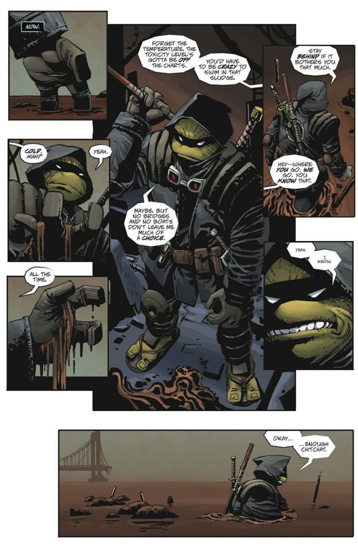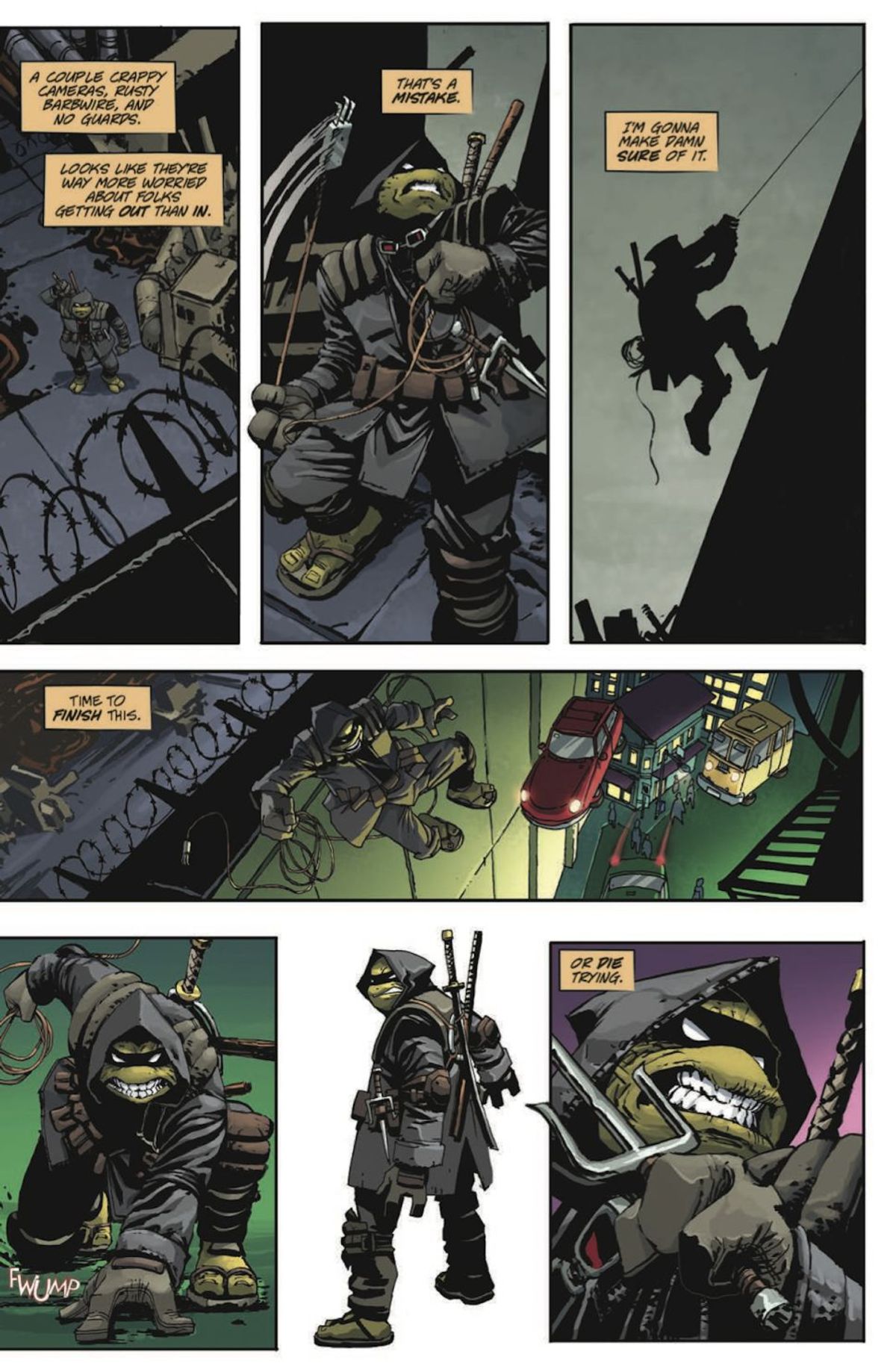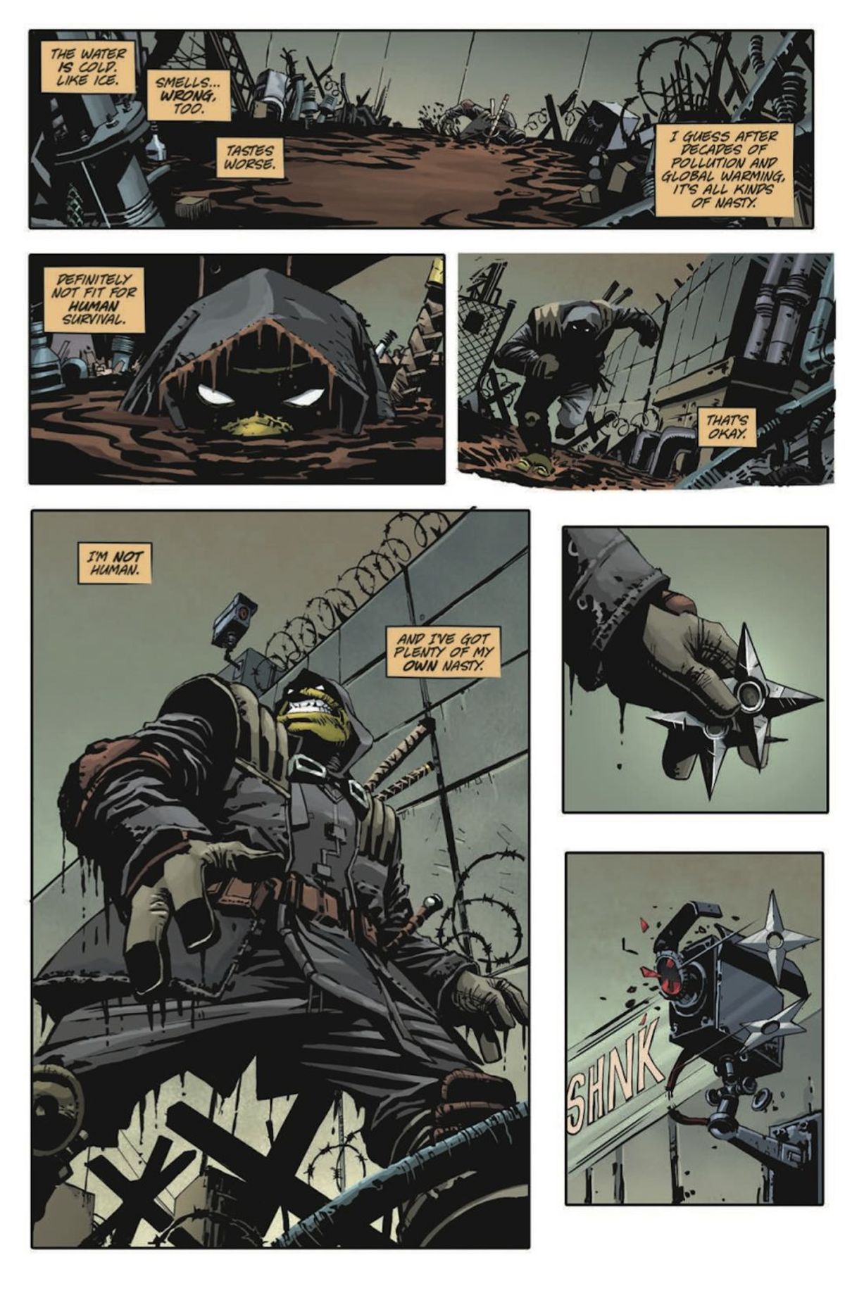 In una New York del futuro molto diversa da quella che conosciamo oggi, una solitaria Tartaruga sopravvissuta intraprende una missione apparentemente senza speranza, con l'obiettivo di fare giustizia alla sua famiglia e agli amici caduti. Gli storyboard dinamici di Eastman, le chine di Esau e Isaac Escorza e un'emozionante sceneggiatura ricca di sorprese scritta da da Tom Waltz si combinano rendendo questa storia una delle più memorabili delle TMNT che voi abbiate mai letto! Gli albi avranno un formato maggiore e più pagine del solito, per un indimenticabile racconto che non potete perdervi!