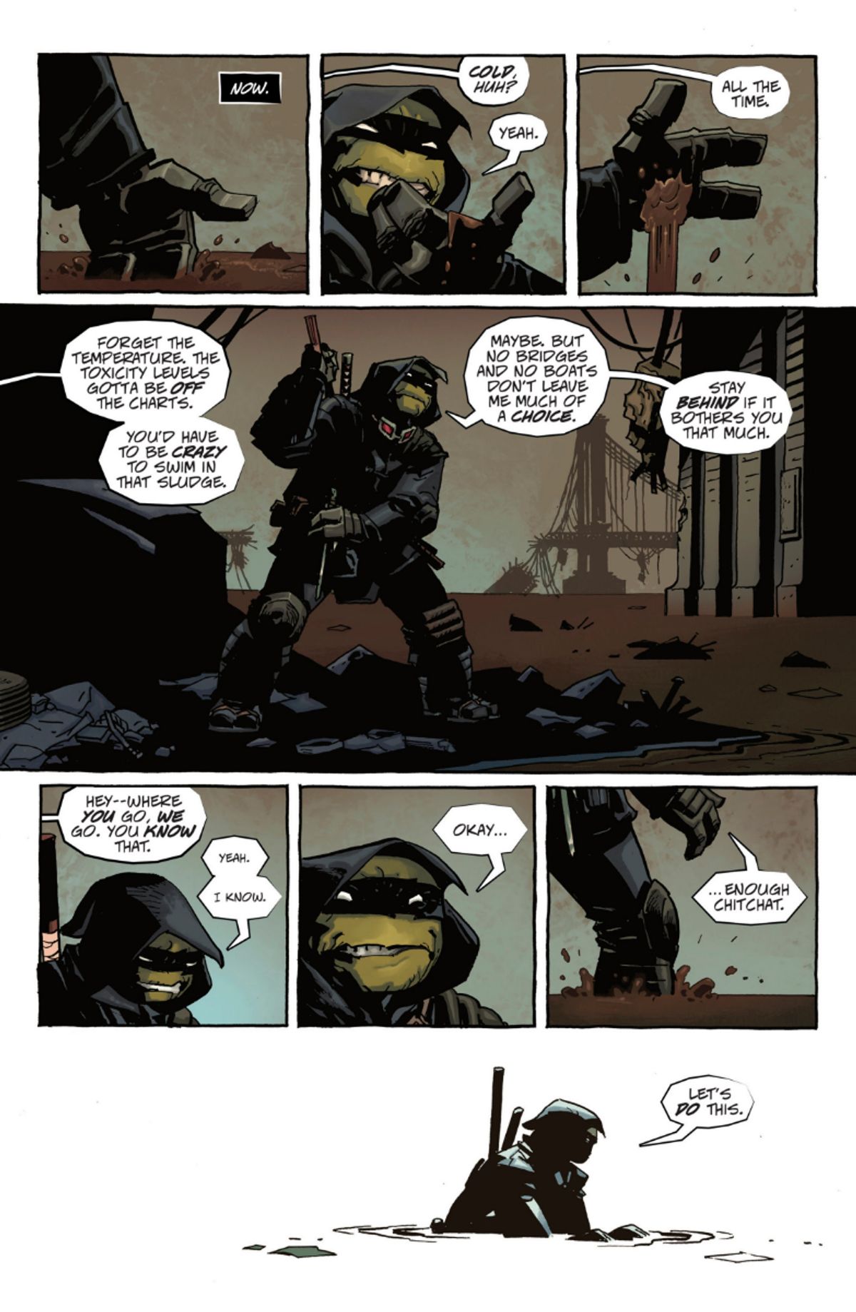 In una New York City del futuro molto diversa da quella odierna, una solitaria Tartaruga superstite si imbarca in una missione apparentemente disperata per vendicare la sua famiglia e gli amici scomparsi. Il dinamico progetto di Eastman, le suggestive chine di Andy Kuhn e la sceneggiatura di Tom Waltz si mescolano per dare vita a una delle storie delle TMNT più memorabili che i fan leggeranno mai.
