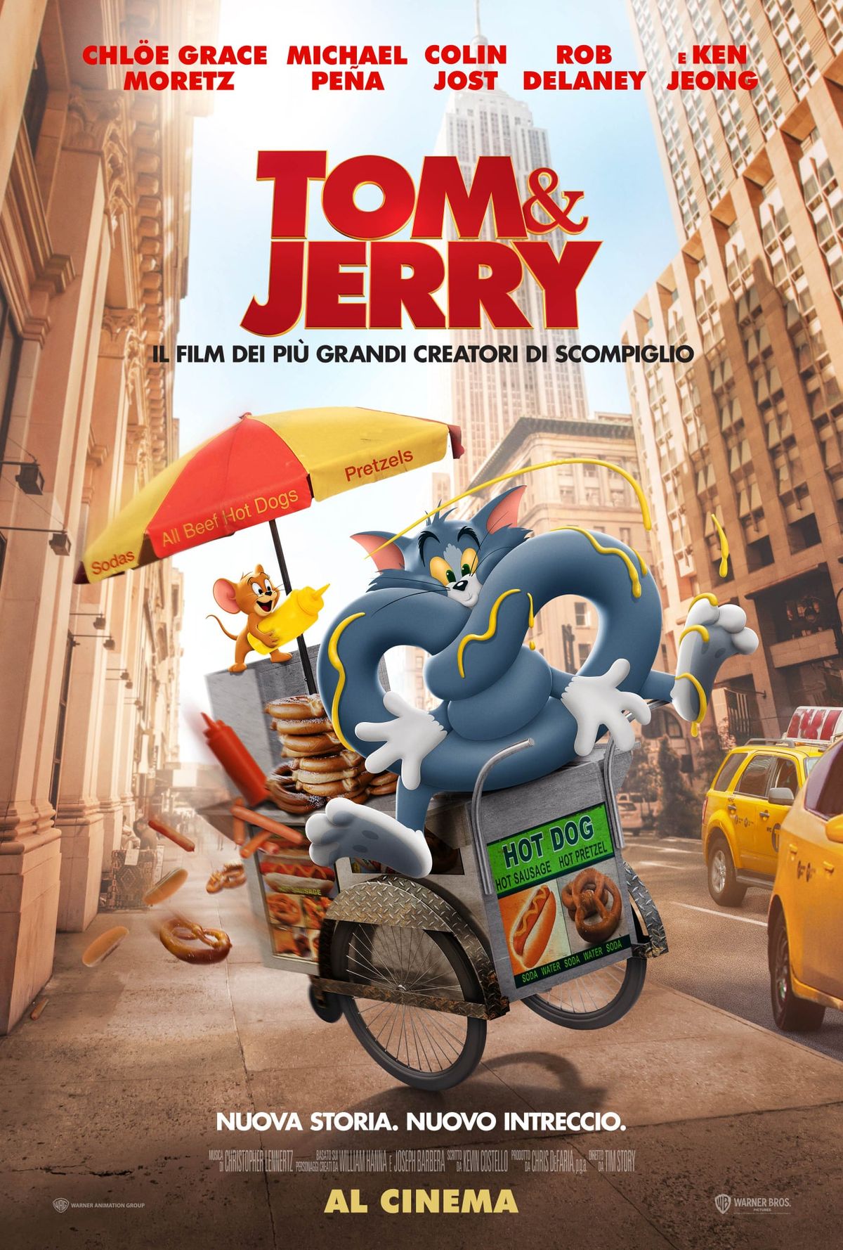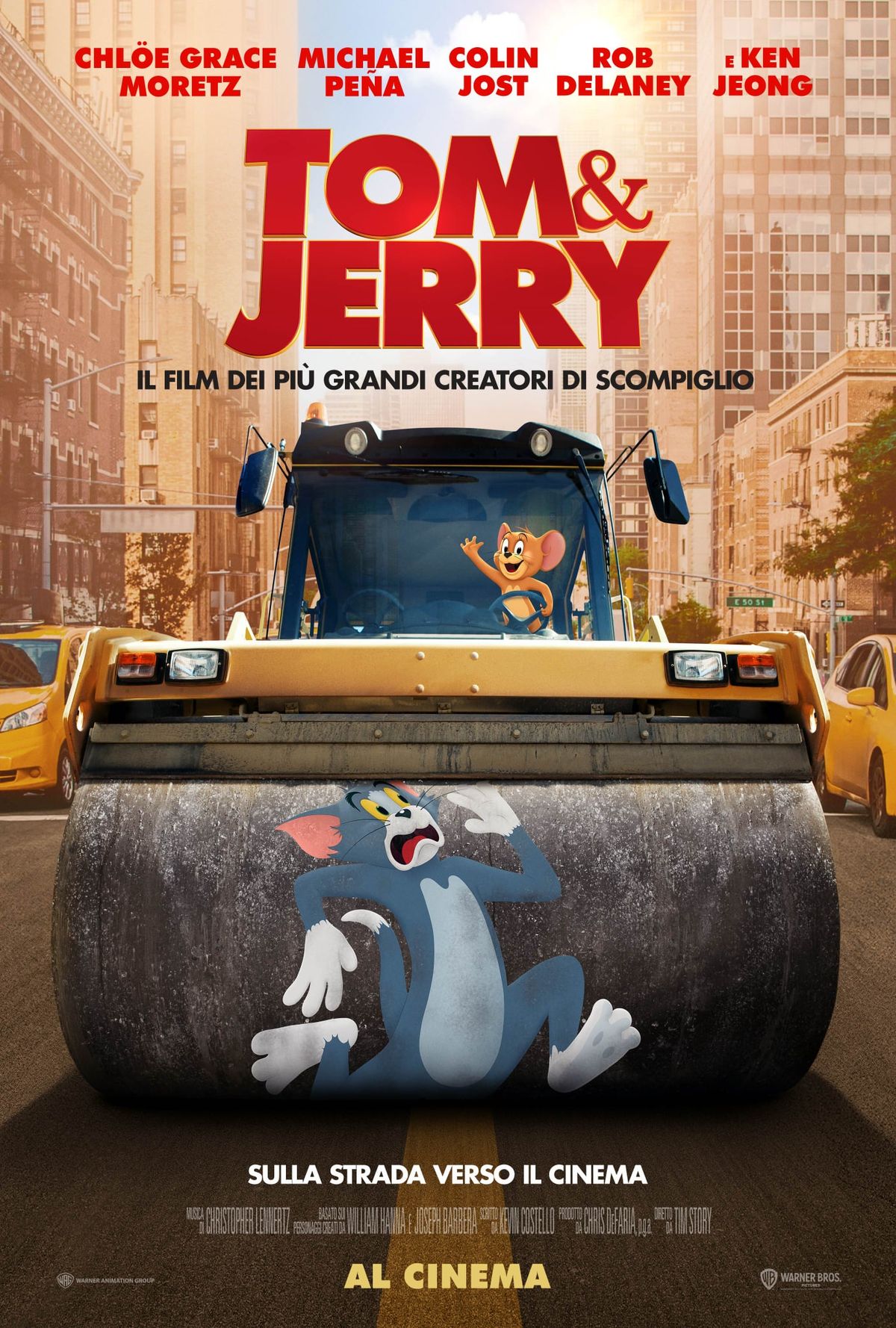 Scritto da Kevin Costello, basato sui personaggi creati da William Hanna e Joseph Barbera. I produttori esecutivi sono Tim Story, Adam Goodman, Steven Harding, Sam Register, Jesse Ehrman, ed Allison Abbate. Il team creativo include il direttore della fotografia Alan Stewart, lo scenografo James Hambidge, al montaggio Peter S. Elliot, la costumista Alison McCosh. La musica è composta da Christopher Lennertz.Nel film “Tom & Jerry” diretto da Tim Story, una delle rivalità più amate della storia si riaccende quando Jerry si trasferisce nel miglior hotel di New York alla vigilia del “matrimonio del secolo”, costringendo il disperato organizzatore dell’evento ad assumere Tom per sbarazzarsi di lui. La conseguente battaglia tra gatto e topo minaccia di distruggere la sua carriera, il matrimonio e forse l’hotel stesso. Ma presto, sorge un problema ancora più grande: uno staff diabolicamente ambizioso che cospira contro tutti e tre. Una miscela strabiliante di animazione classica e live action, la nuova avventura sul grande schermo di Tom e Jerry rappresenta un nuovo orizzonte per questi personaggi iconici e li costringe a fare l’impensabile… lavorare insieme per salvare la situazione.