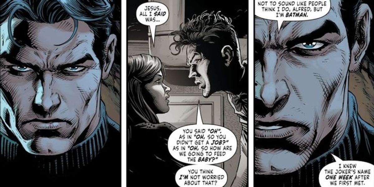Credo che l'ultima battuta di dialogo sia importante: non importa il vero nome di Joker, perché non ha a che fare con la sua natura. Non ci parla della sua identità, perché la sua vera identità non conta. Conta quel che fa alle persone e conta il modo in cui la gente lo percepisce. Questo è il nucleo di Three Jokers più di ogni altro elemento: cosa vedono Bruce, Jason e Barbara in Joker e come il suo spettro affligge le loro vite, passate e future?