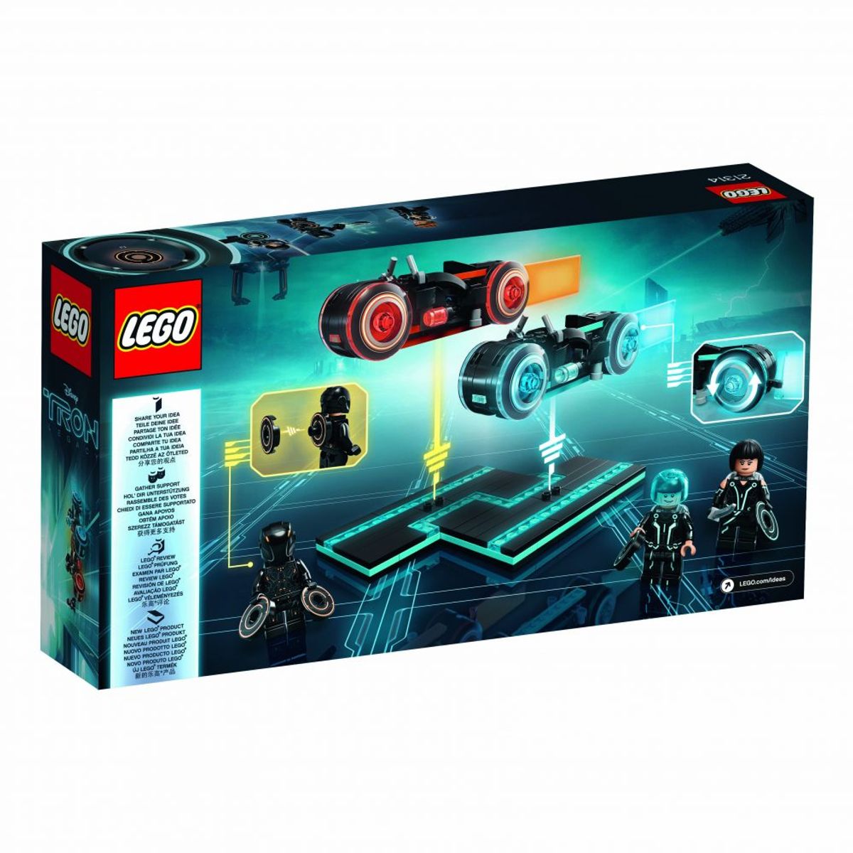 Costruisci, gioca ed esponi questo futuristico set LEGO® Ideas 21314 TRON: Legacy di Disney, con 2 Moto di luce, ciascuna con sedili per minifigure ed elementi luce trasparenti, più una rete TRON separabile con punti di attacco per i veicoli. Usa la rete come base per esporre le Moto di luce o separala in 2 sezioni per ricreare la scena dell'inseguimento del film Disney TRON: Legacy. In alternativa, organizza una battaglia nell'arena con i Dischi di identità tra le 3 minifigure LEGO incluse - Sam Flynn, Quorra e Rinzler. Questo giocattolo include un opuscolo con informazioni sul suo fan creatore e sui designer LEGO, oltre alla storia del film della Disney TRON: Legacy e i suoi personaggi principali.