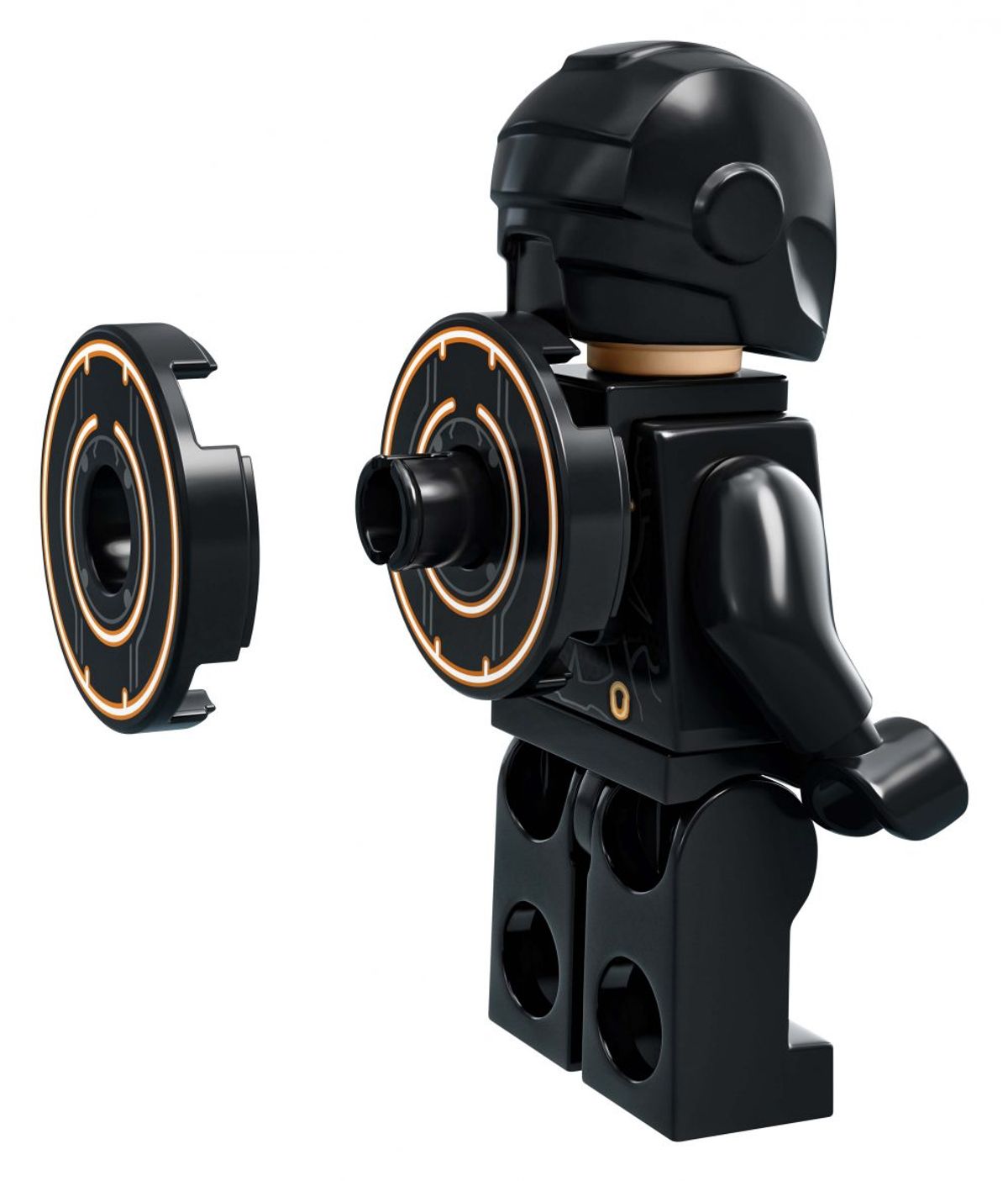Attacca i dischi sul retro di ogni minifigure. Questo giocattolo include un opuscolo con le istruzioni per la costruzione, informazioni sul suo fan creatore e sui designer LEGO, oltre alla storia del film della Disney TRON: Legacy e i suoi personaggi principali.