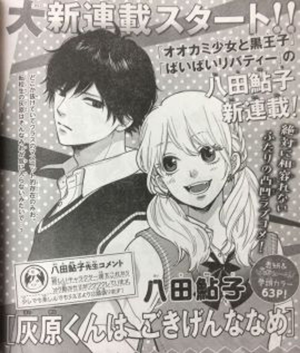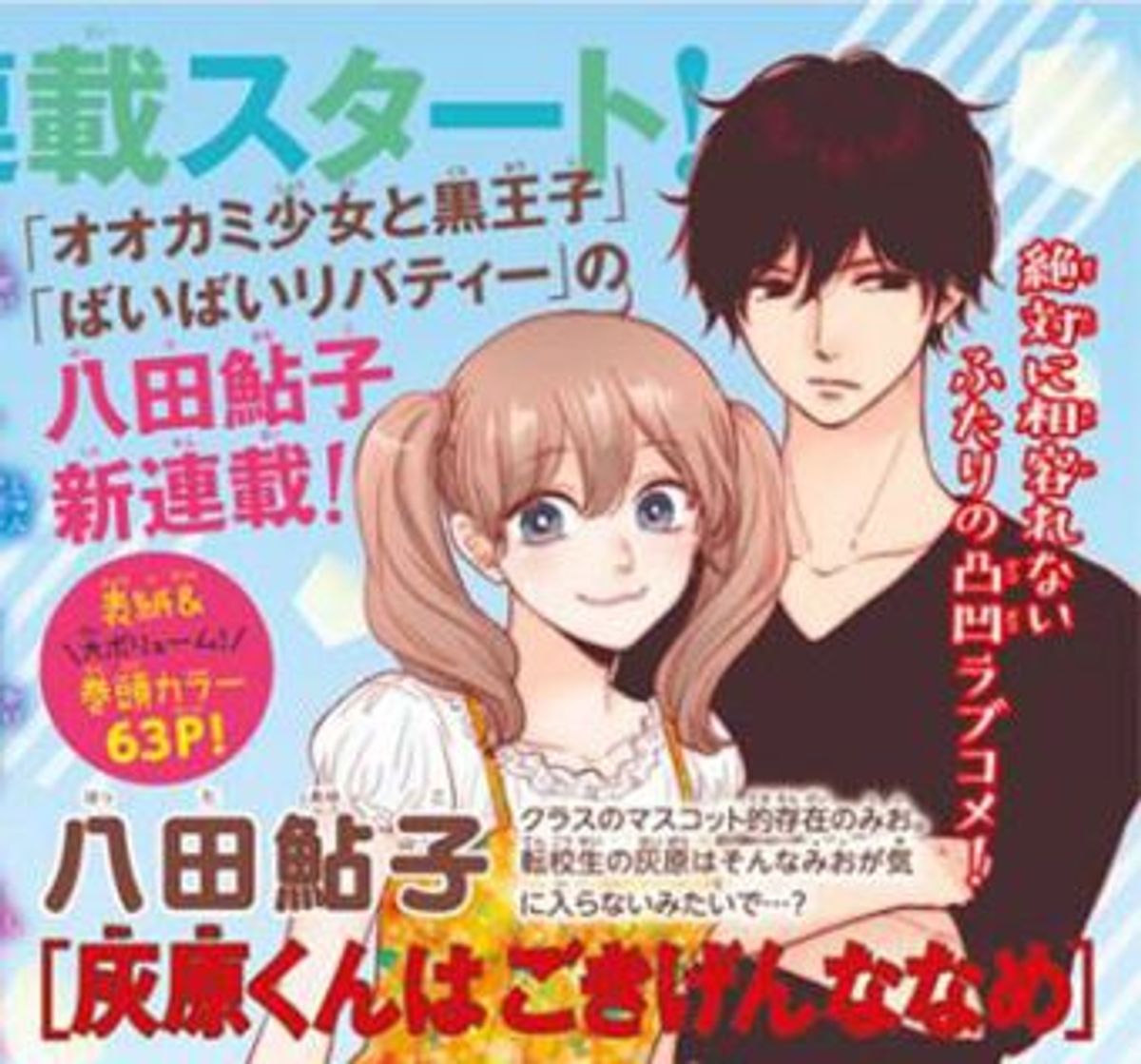 Lo shojo si intitolerà Haibara-kun wa Gokigen Naname ("Haibara è di cattivo umore") ed esordirà venerdì prossimo, con alcune pagine a colori, su Betsuma, rivista nipponica edita da Shueisha.