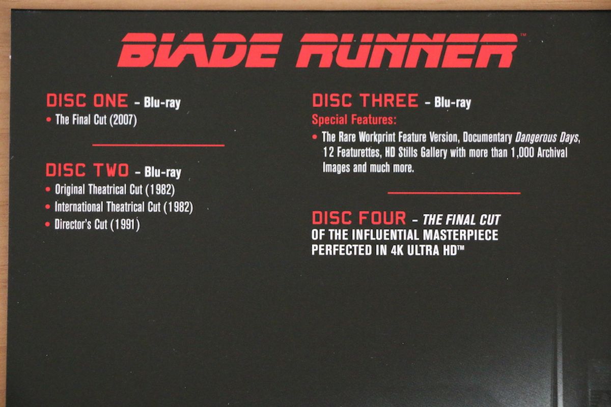 Non mancano all’appello le altre tre versioni finali del film, nello specifico: l’Original Cut, l’International Cut e la Director's Cut.A completare questo “best buy” è presente anche la Workprint Version, rara versione di lavoro originale, proiettata nel 1982 durante gli screening selezionati per il pubblico a Denver e a Dallas. Presente anche l’esaustivo documentario “Dangerous Days”, 12 clip extra, più di 1000 immagini d’archivio e un art-book con foto dal backstage, produzione artistica, schizzi e storyboard.
