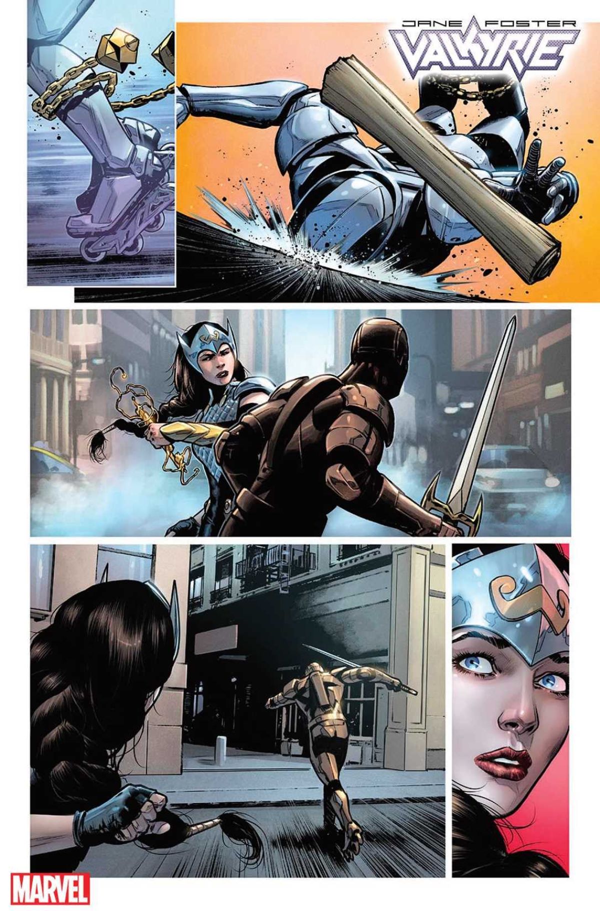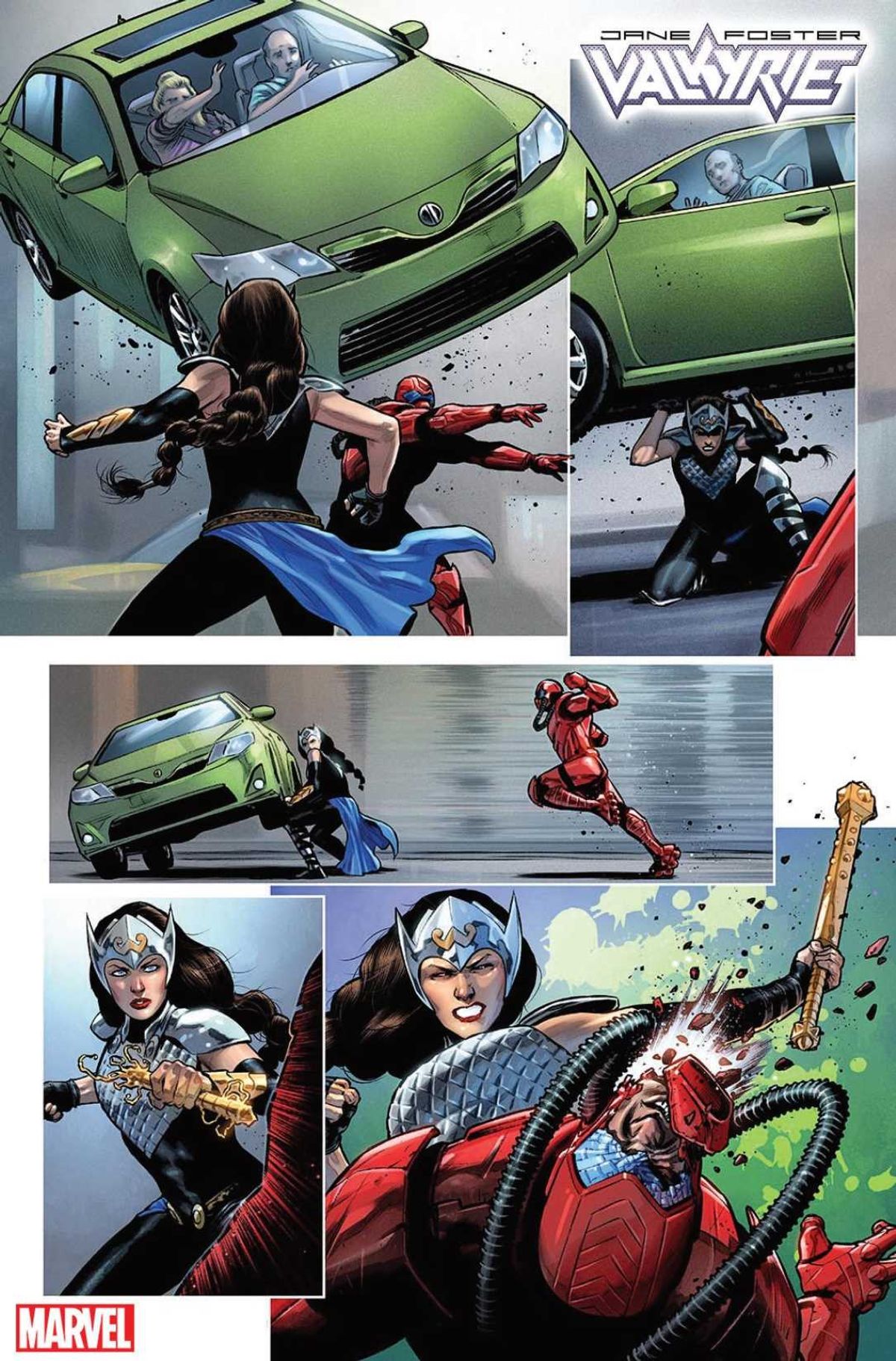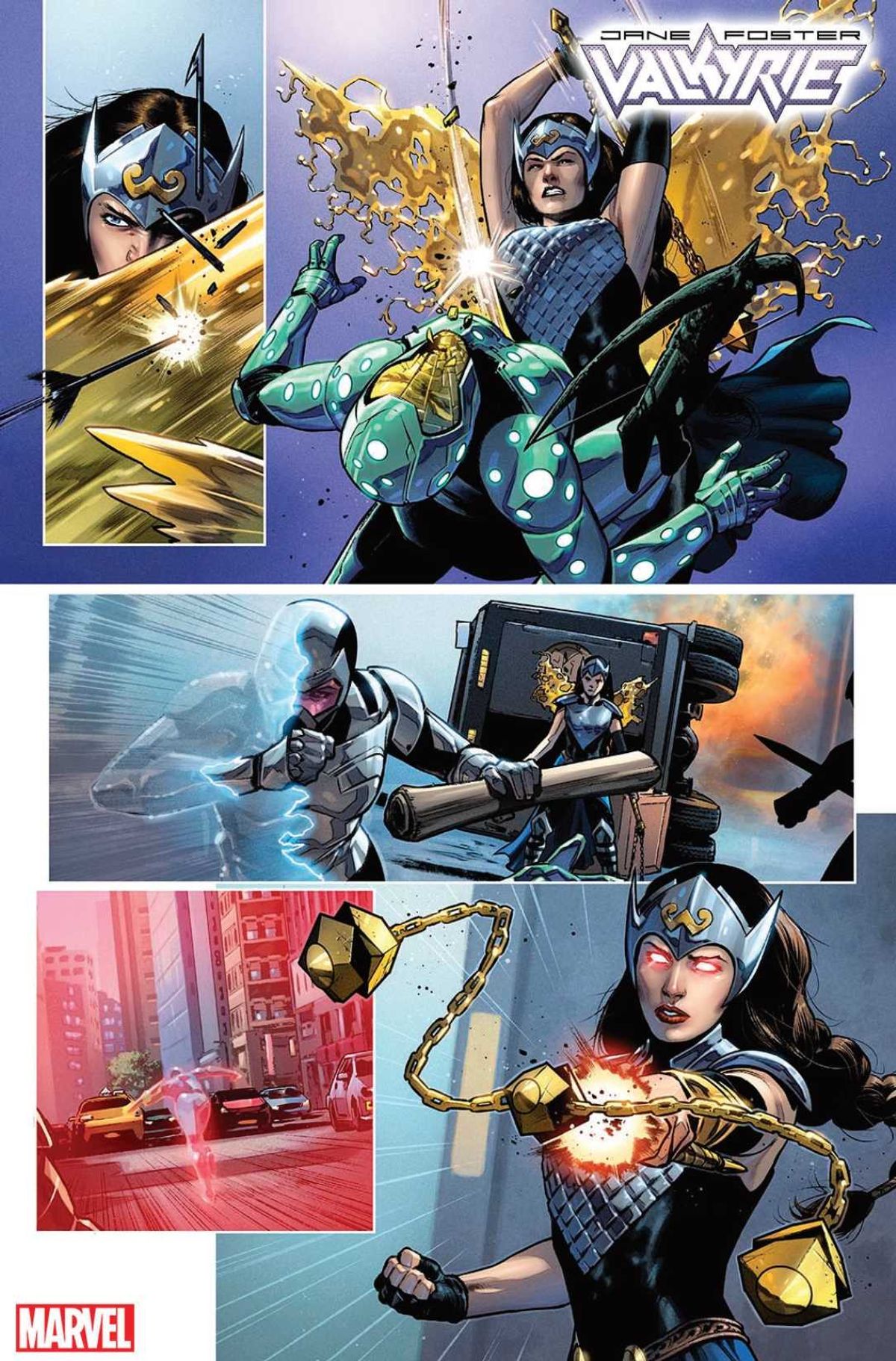 Dopo avervi riportato l'annuncio durante il C2E2 2019 e avervi fornito tutti i dettagli sulla nuova identità di Valchiria, vi proponiamo un primo sguardo alle tavole del numero #1 di Jane Foster: Valkyrie, serie scritta da Jason Aaron (Thor) e Al Ewing (Immortal Hulk) per i disegni di Cafu (Action Comics), con Mahmud Asrar che firma la copertina regolare.